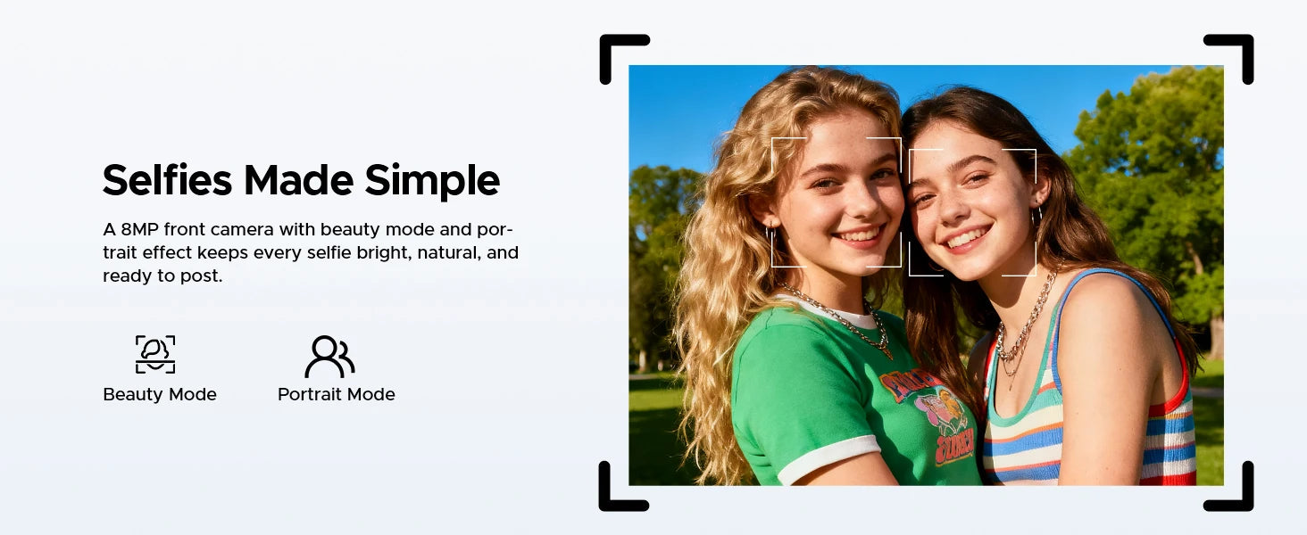- 8 MP Frontkamera eignet sich gut für Videoanrufe, Selfies und schnelle Social-Media-Posts.