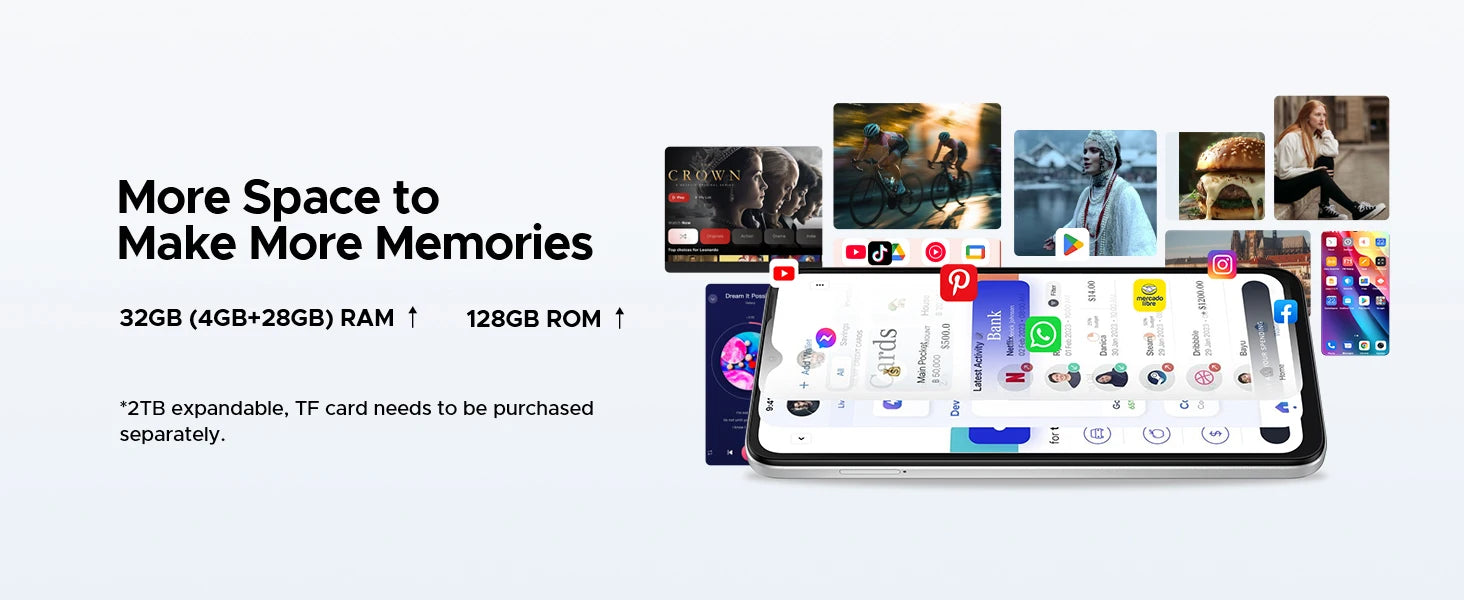 - Unterstützung von Speichererweiterung via microSD-Karten bis zu 2 TB (T-Flash Card) für reichlich Platz für Fotos, Apps und Videos.
