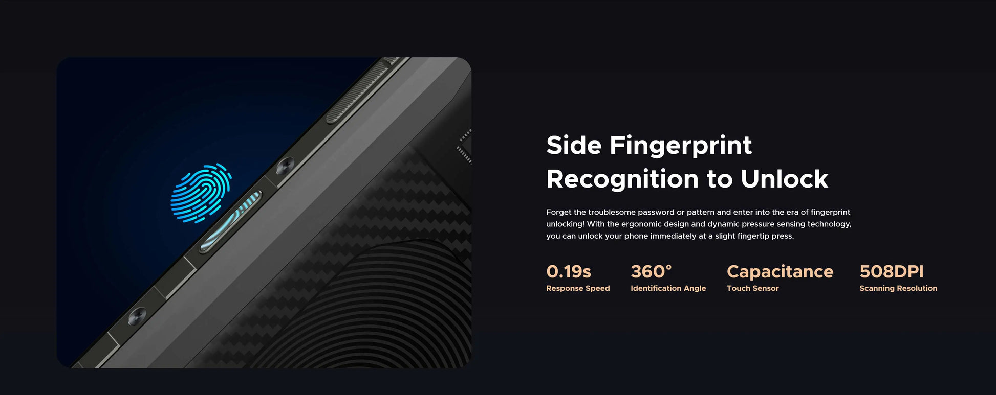 - Schneller Zugriff durch seitlich montierten biometrischen Sensor – einfache Ein-Hand-Bedienung mit sicherer Entsperrung.