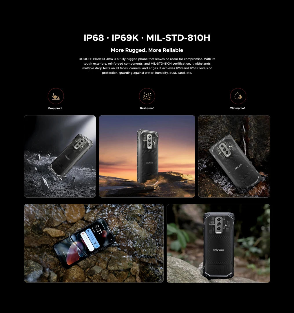 Das DOOGEE Blade10 Ultra ist das perfekte Outdoor-Smartphone für alle, die auch außerhalb der sicheren Umgebung belastbare Technik benötigen. Es vereint eine beeindruckende Akku-Kapazität, robuste Schutzfunktionen und eine leistungsstarke Leistung in einem kompakten, handlichen Gerät. Es begleitet Sie zuverlässig durch Arbeitstage, Outdoor-Abenteuer oder Reisen – und das mit spot-on-Alltagsnutzen, ohne Kompromisse bei Sicherheit, Geschwindigkeit oder Speicherplatz.