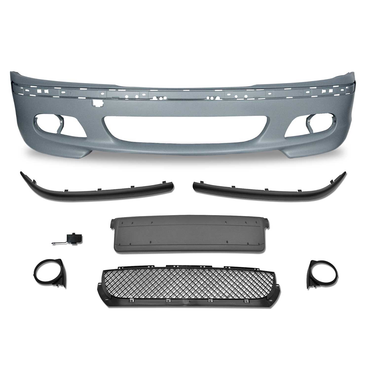 Stoßleisten, Nummernschildhalterung, Wabengitter, Halterung für Nebelscheinwerfer und Abdeckung für Abschleppvorrichtung