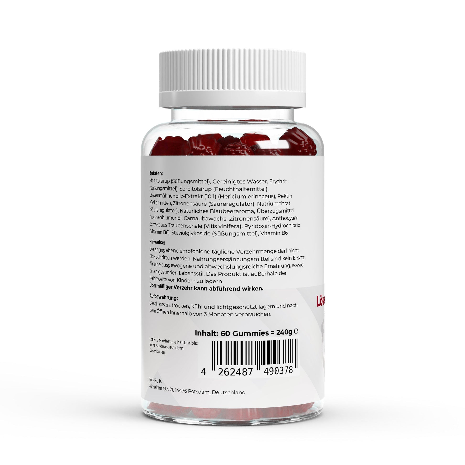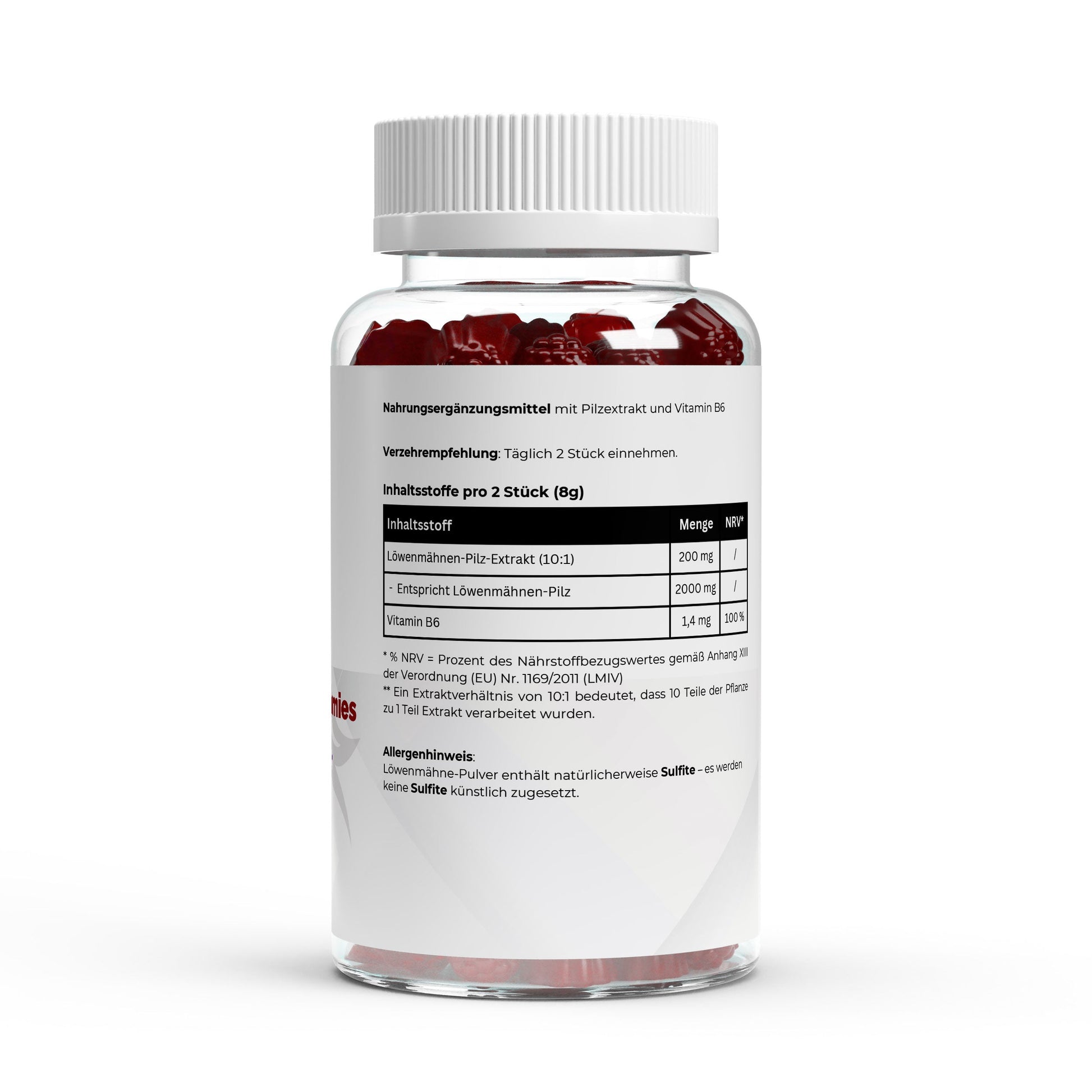 Löwenmähne Gummies – Vegan, Zuckerfrei & Hochdosierter Löwenmähnenpilz-Extrakt zur Unterstützung der Konzentration und geistigen Leistungsfähigkeit