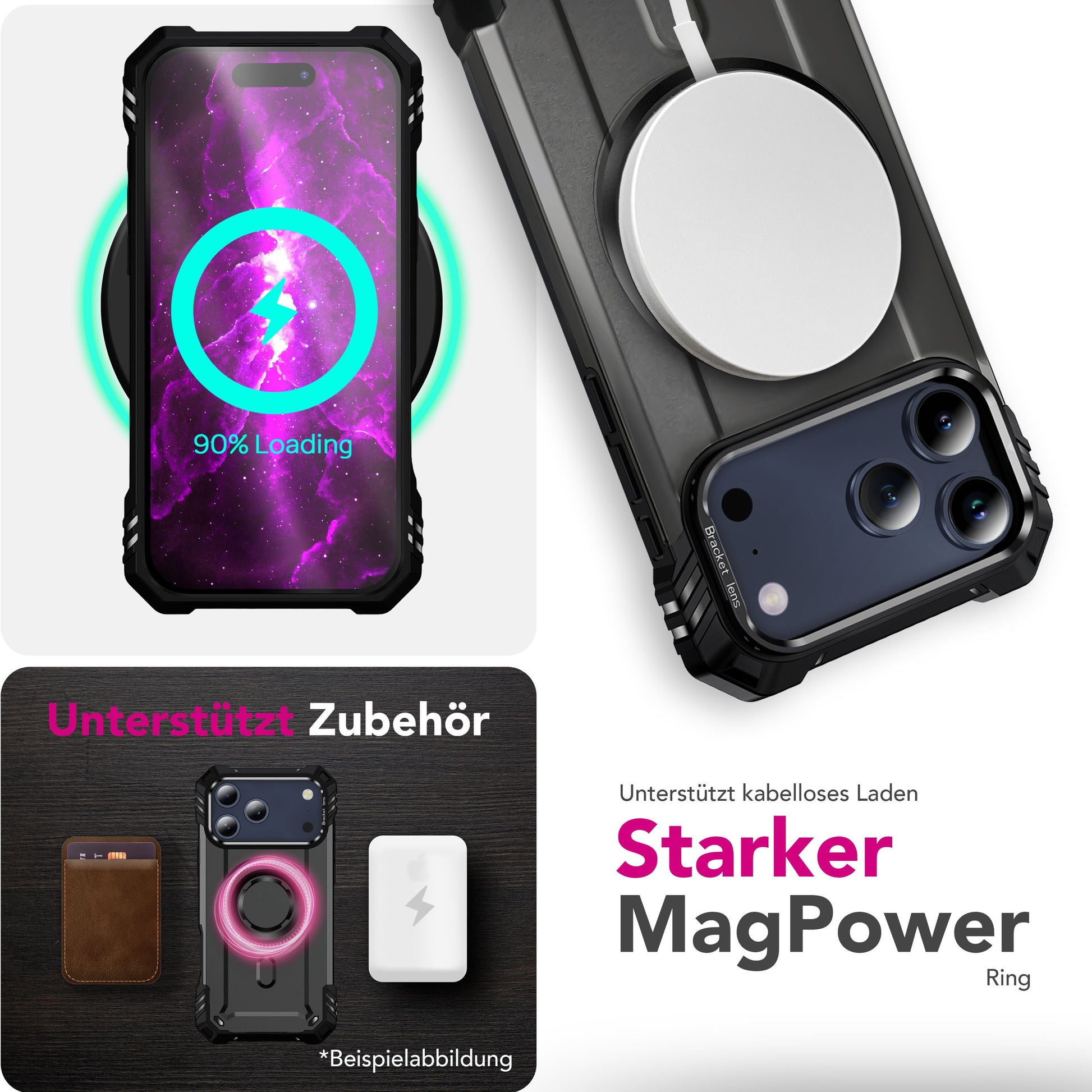 NALIA MagSafe Hülle Granite für Apple iPhone 17 Pro Max (Militär-Panzer) - Robustes Armor Kickstand Cover, Stoßfeste Outdoor Schutzhülle, Military Style Case