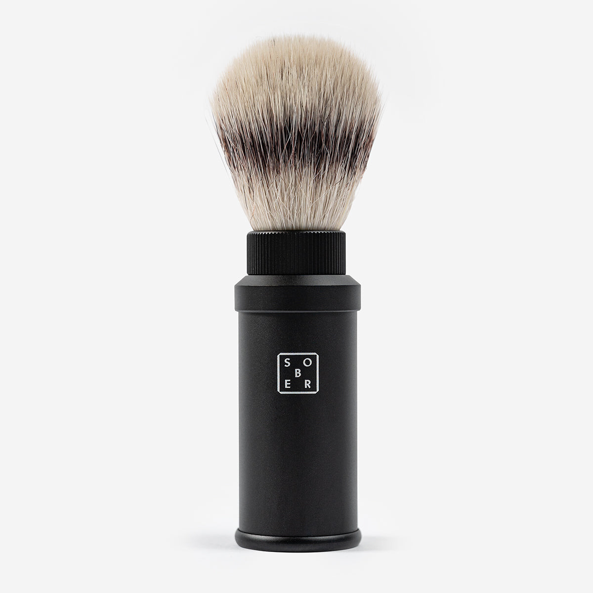 Bereit für ein jederzeit großartiges Rasiererlebnis auch auf Reisen? Der sober Rasierpinsel aus leichtem und stabilem Aluminium sowie in der Anwendung überlegenen weichen Borsten ist das perfekte Werkzeug um eine aufschäumende Wirkung auf die Rasiercreme zu erzielen und die Barthaare aufzustellen, so dass die Klinge gleichmäßig über die Haut gleiten kann. Der 3-Teile Aluminium Rasierpinsel besteht aus einem Aluminium Mantel mit einer Beschichtung in matt schwarz, in welcher der Pinsel bei Bedarf vollständig nach Nutzung versenkt werden kann.