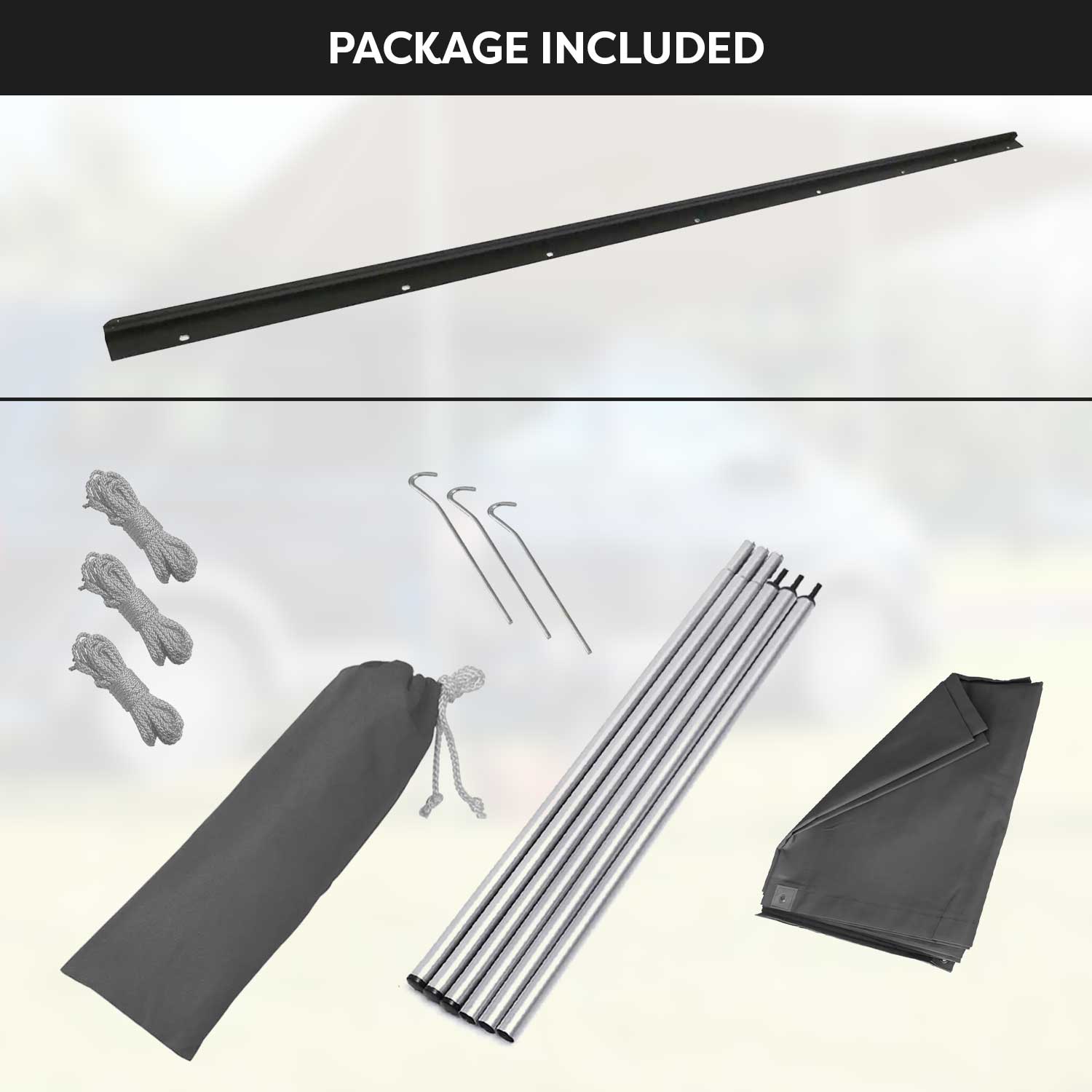 Das höhenverstellbare Gestänge sorgt für zusätzliche Vielseitigkeit, während das leichte und kompakte Design einen einfachen Transport in der mitgelieferten Tragetasche mit Reißverschluss ermöglicht. Mit einer Fläche von 8 Quadratmetern bietet dieses Vorzelt maximalen Schutz vor den Elementen.