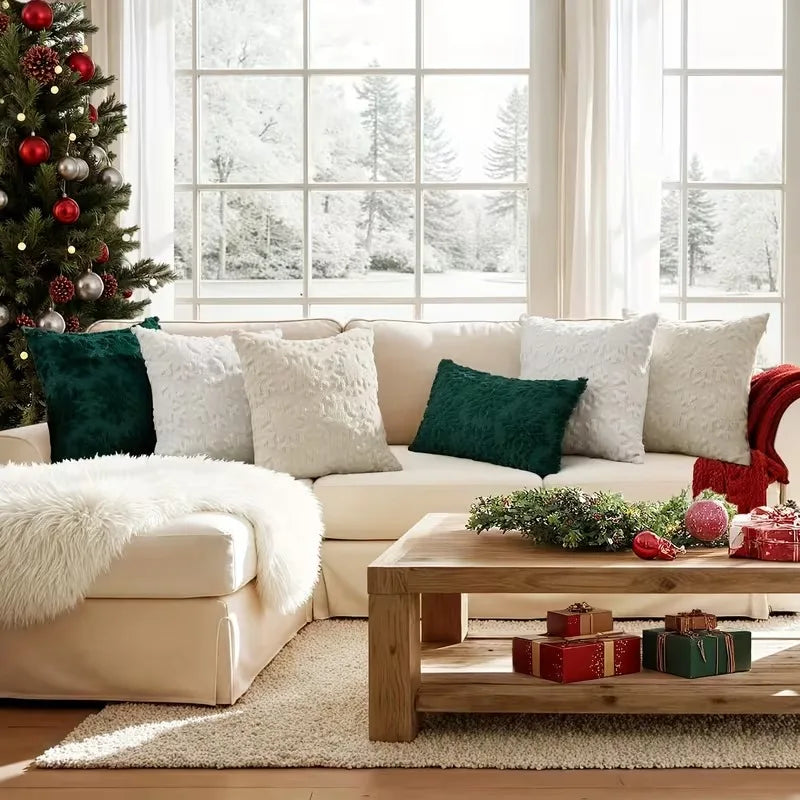 17.72x17.72 Inch Christmas Pillow Cover 3D Embroidered PlushCushion Case Zipper Snowflake SnowmanTree Pattern for Sofa Bed Decor