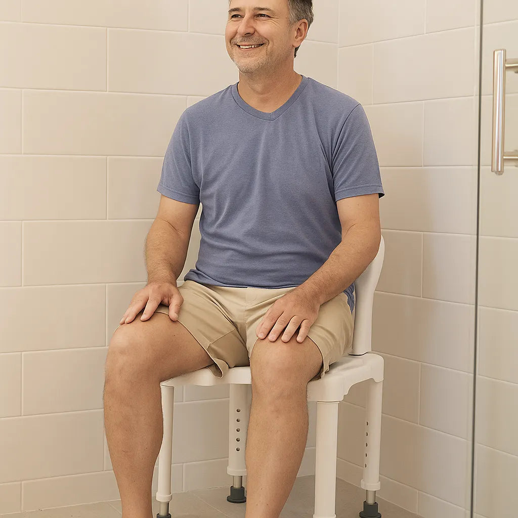 - Stabile Rückenlehne: Unterstützt den Rücken während des Duschens für zusätzlichen Komfort.
