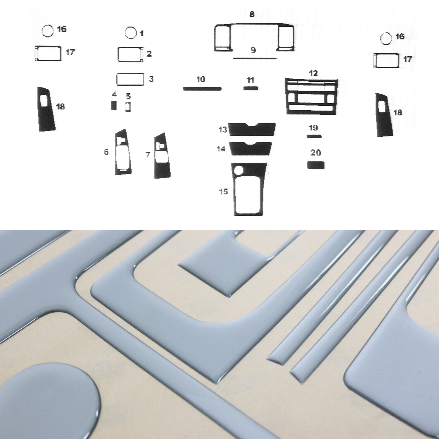 Innenraum Dekor Cockpit für Toyota Corolla 2007-2007 Aluminium Optik 20tlg
