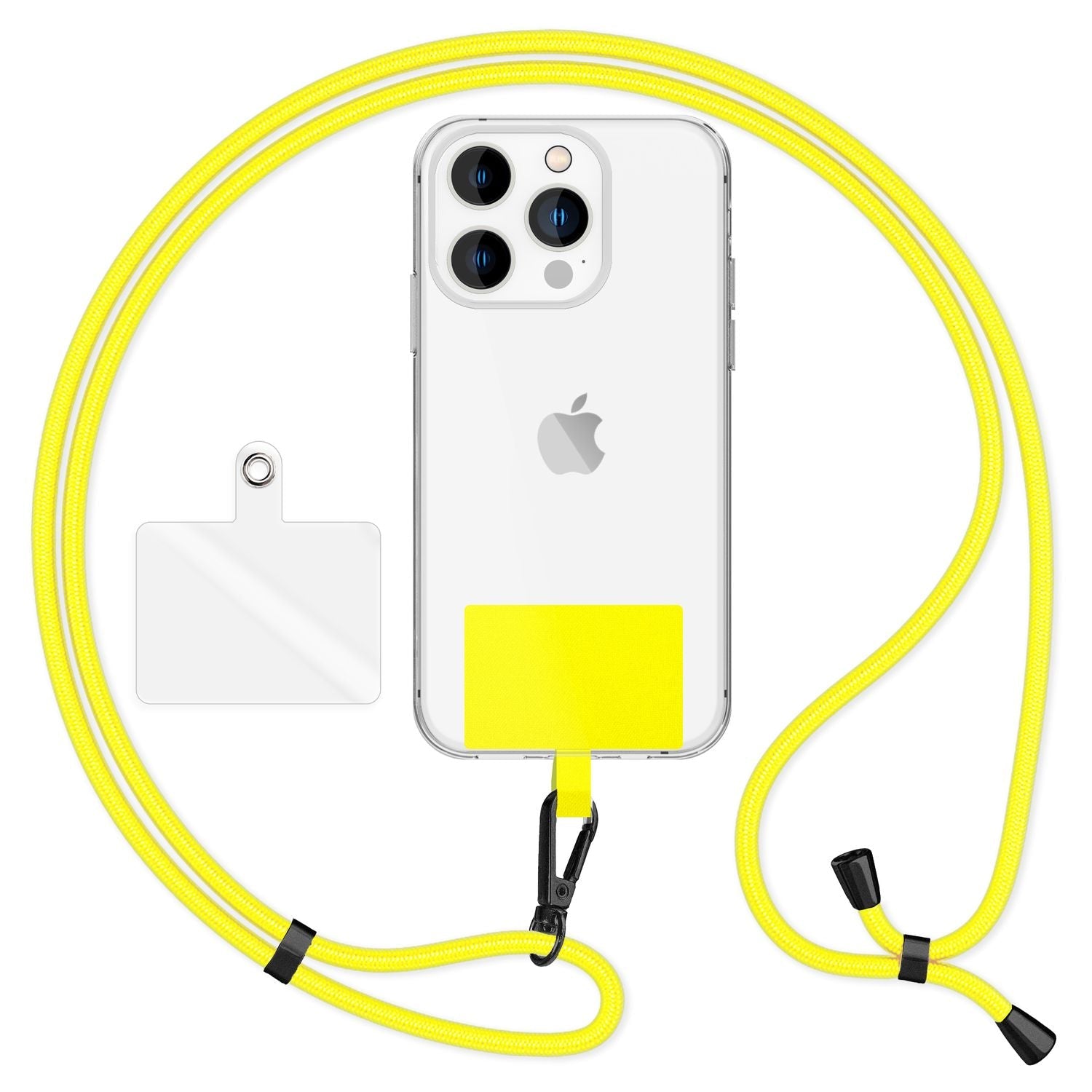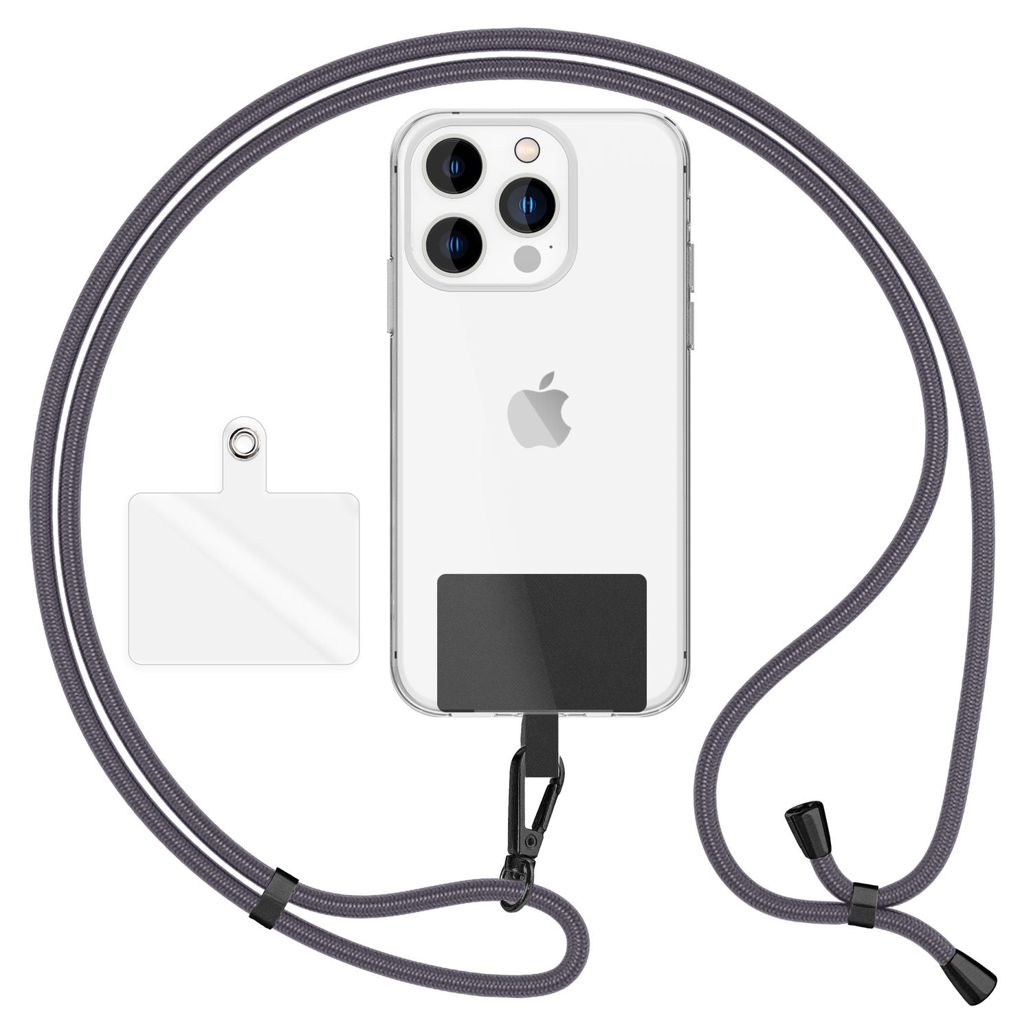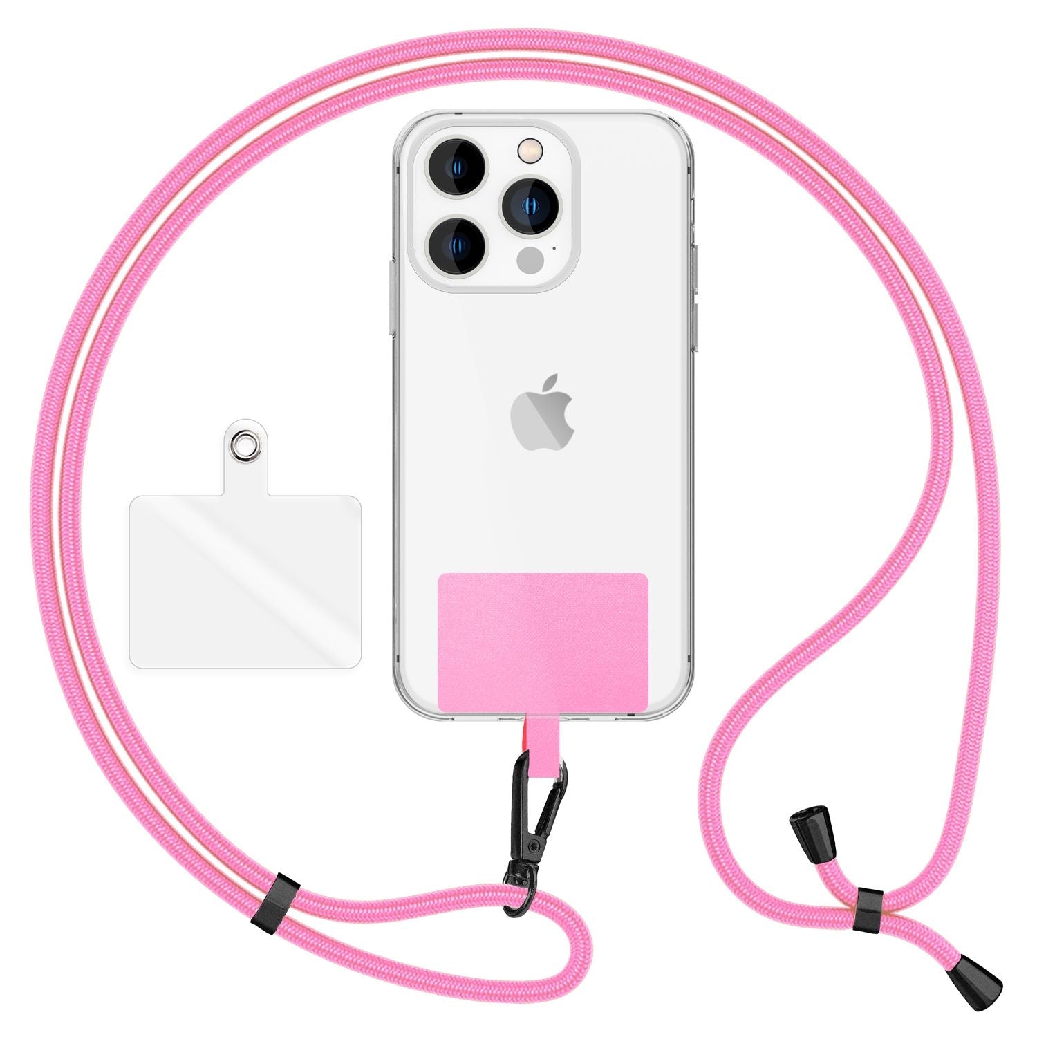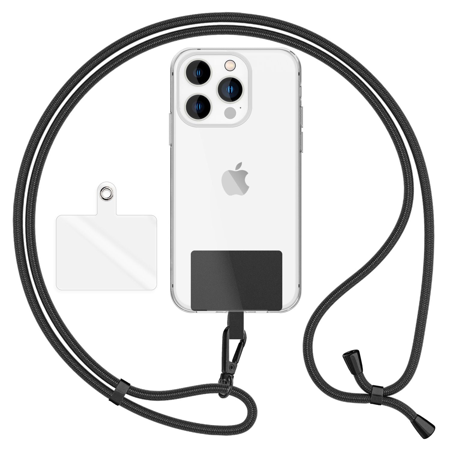 NALIA Universal-Kette mit Pad, Band für Handy-Hülle zum Umhängen, Karabinerhaken aus Metall (matt schwarz), Schlüsselband Umhängeband 160 CM, Crossbody Lanyard
