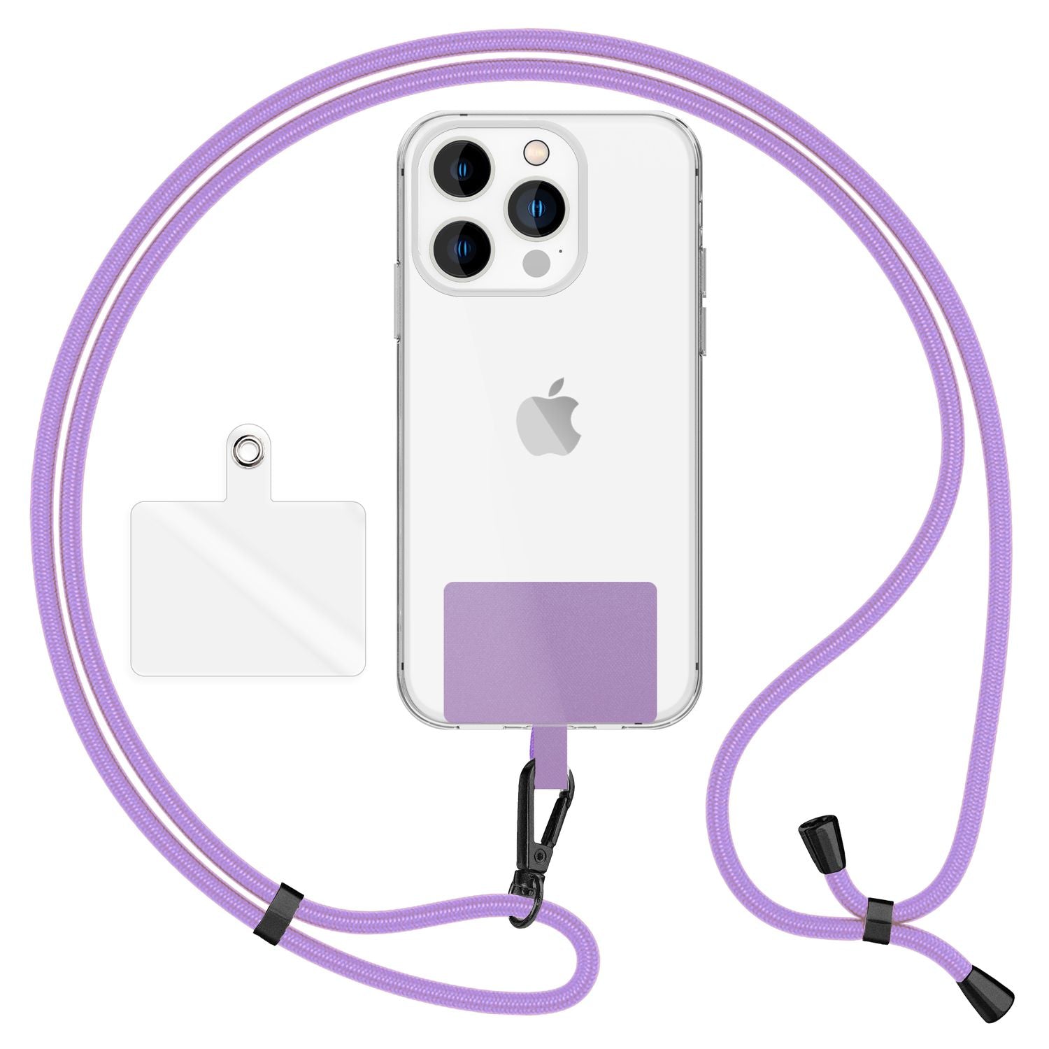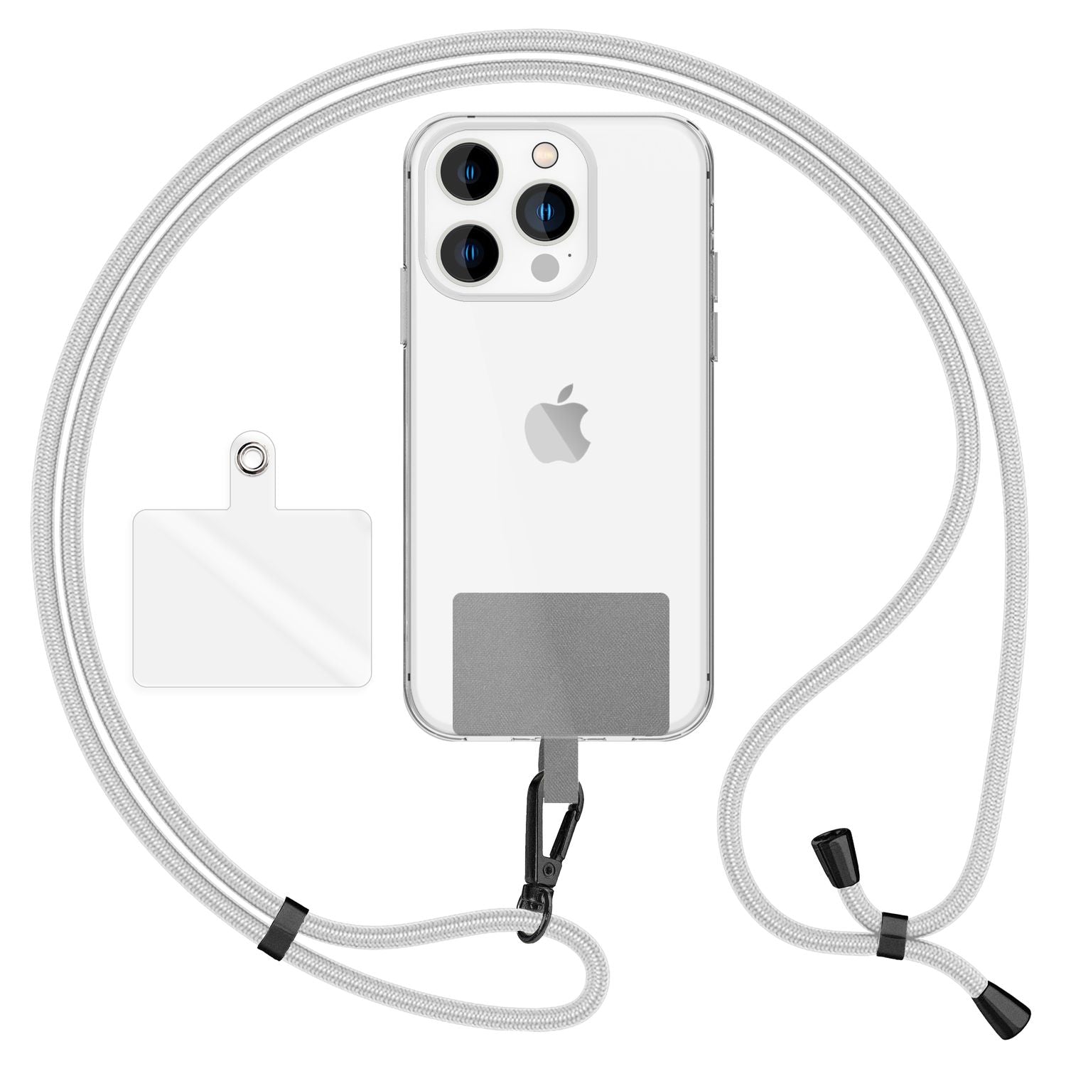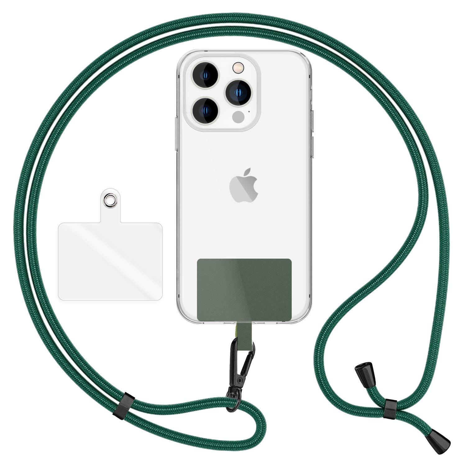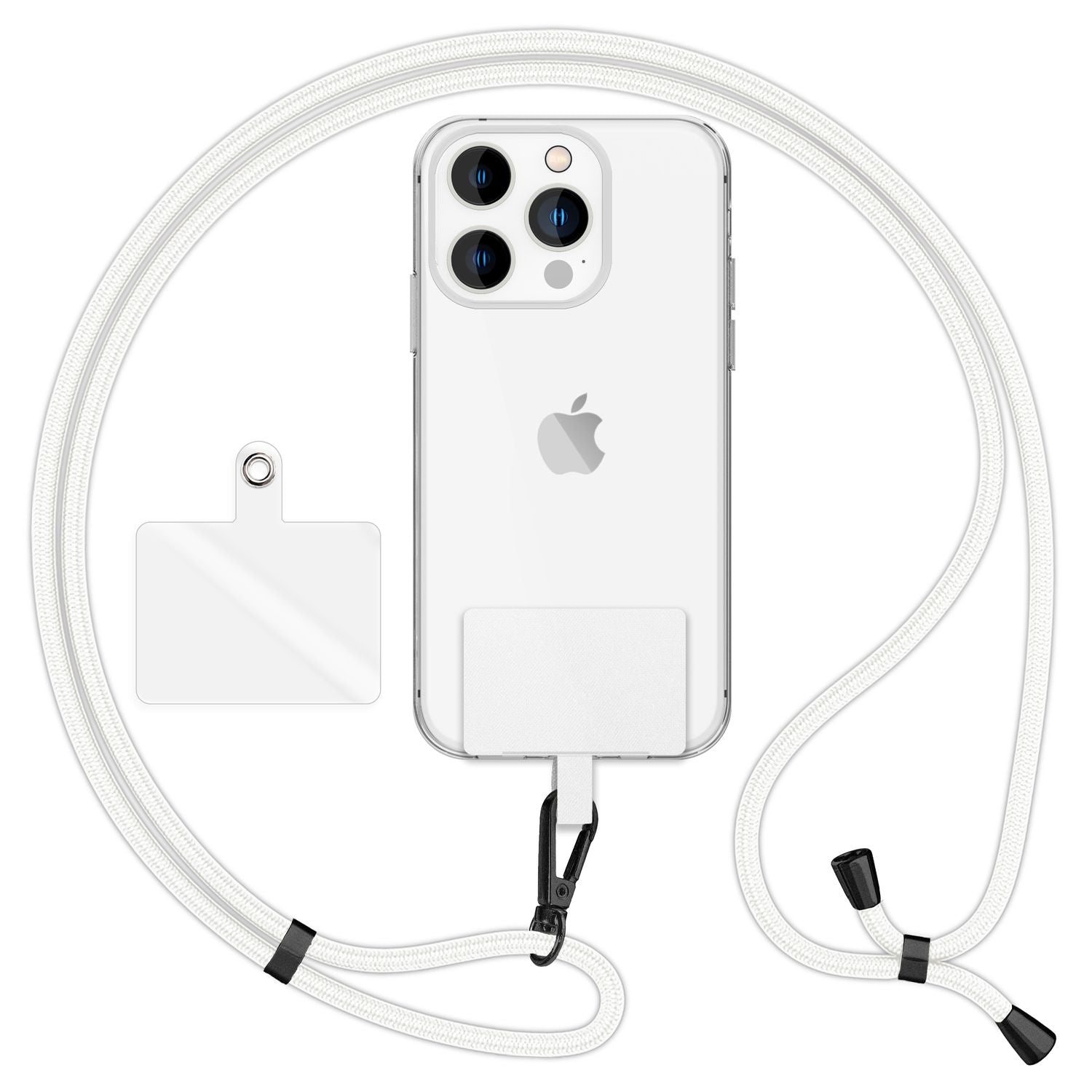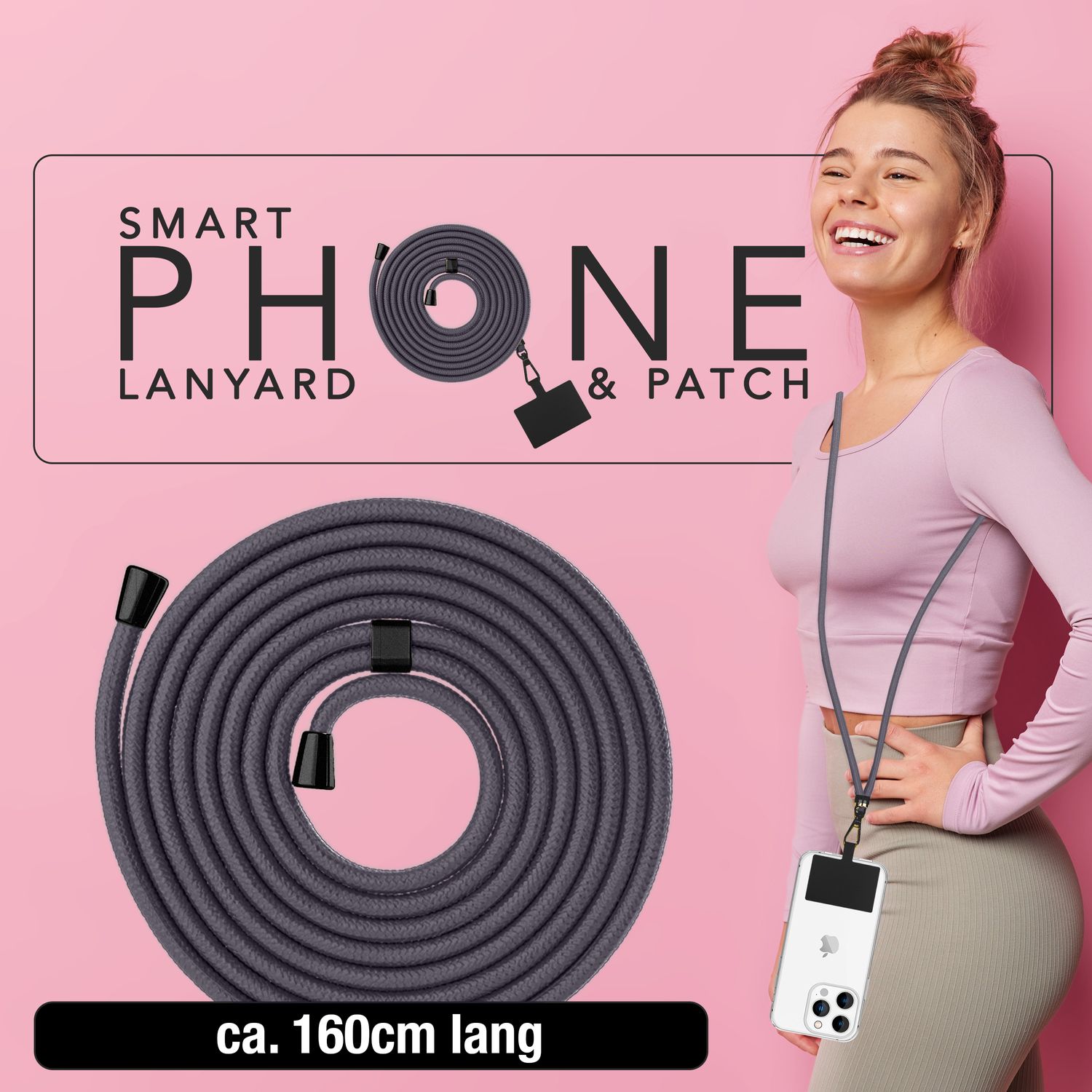 NALIA Universal-Kette mit Pad, Band für Handy-Hülle zum Umhängen, Karabinerhaken aus Metall (matt schwarz), Schlüsselband Umhängeband 160 CM, Crossbody Lanyard