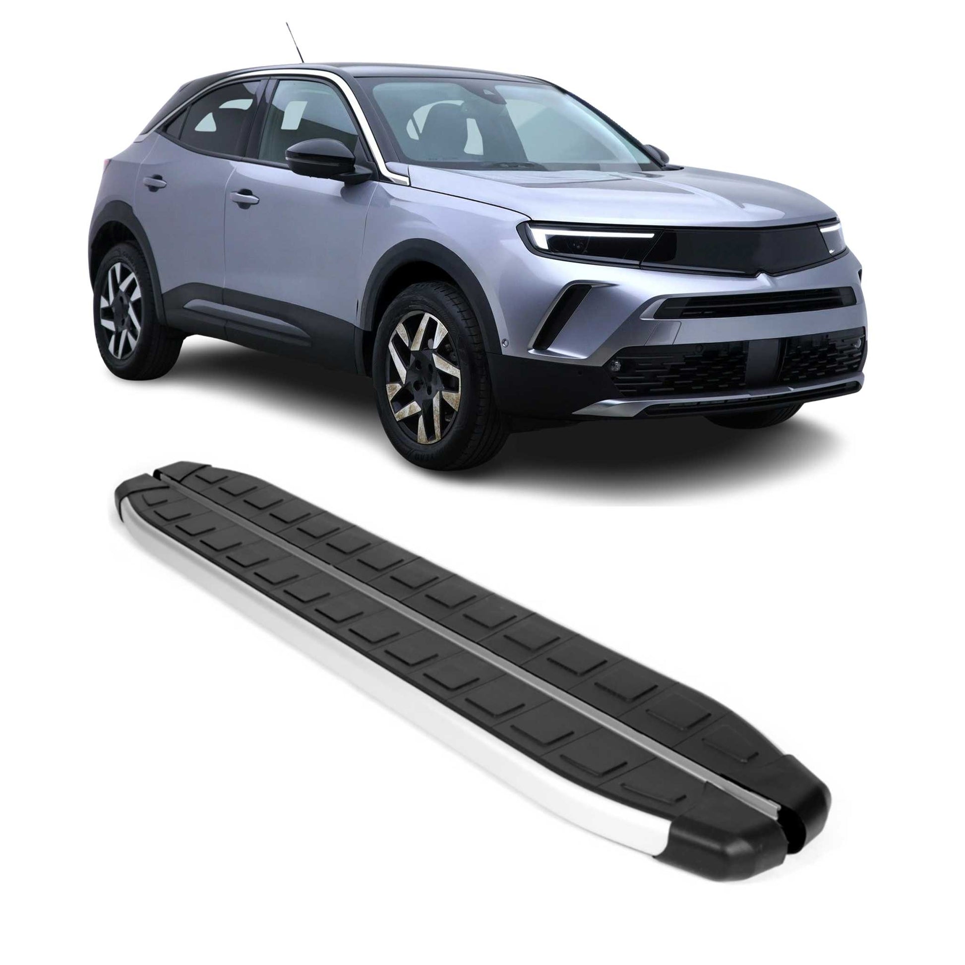 Seitenschweller Trittbretter für Opel Mokka 2020-2025 Alu Schwarz Silber 2tlg