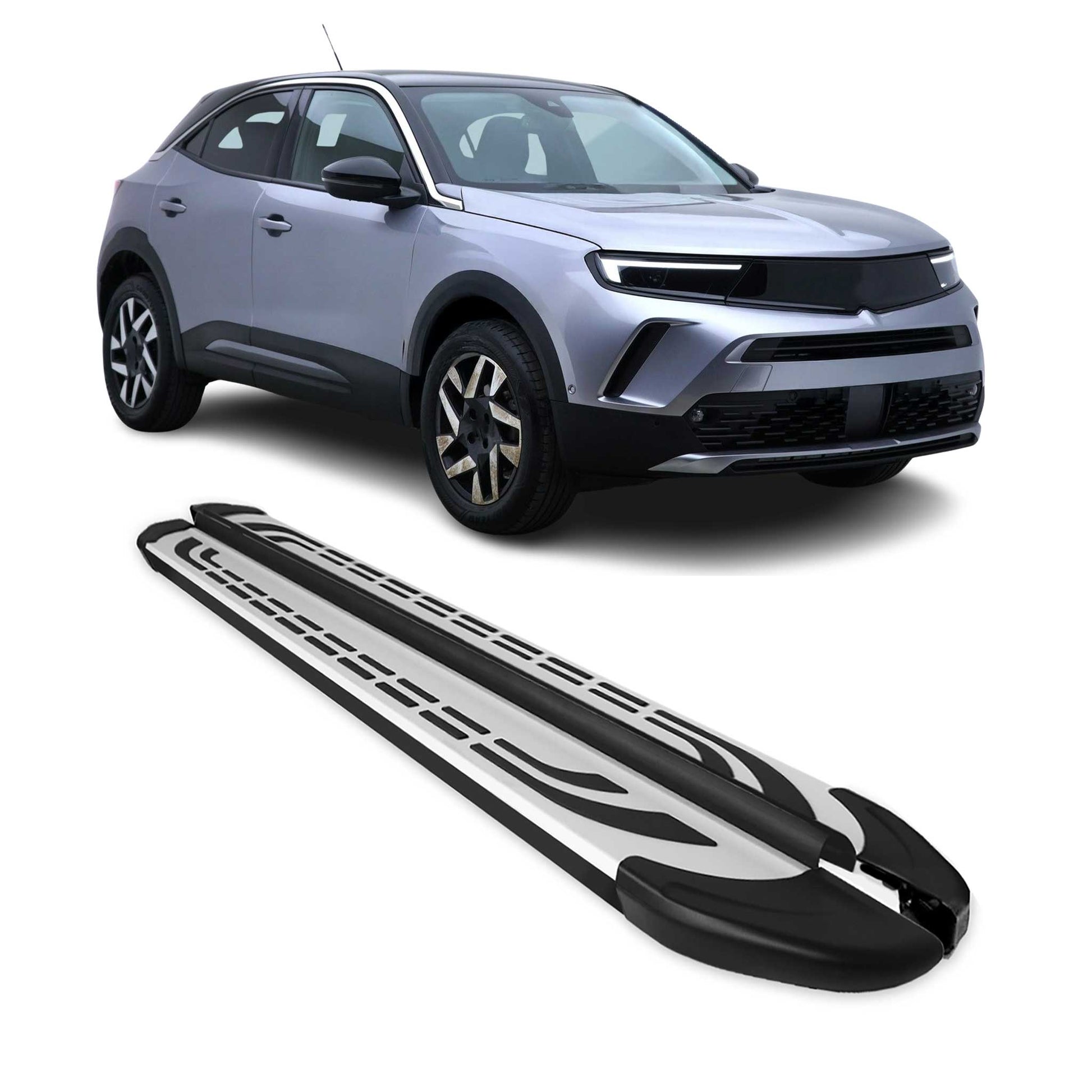 Seitenschweller Trittbretter für Opel Mokka 2020-2025 Alu Silber Schwarz
