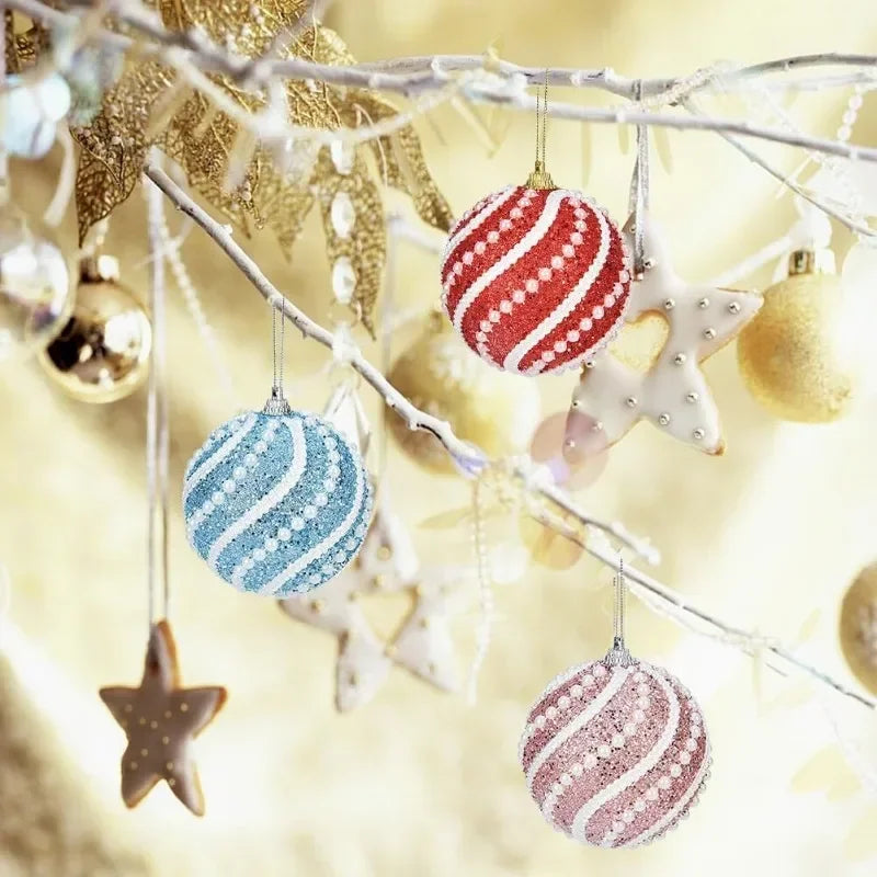 Bruchsicherer Schaumkugeldekoration mit klassischer Weiß-Rot-Farbgebung verbindet Leichtigkeit und Beständigkeit – ideal für eine sichere, wiederverwendbare Weihnachtsdekoration.