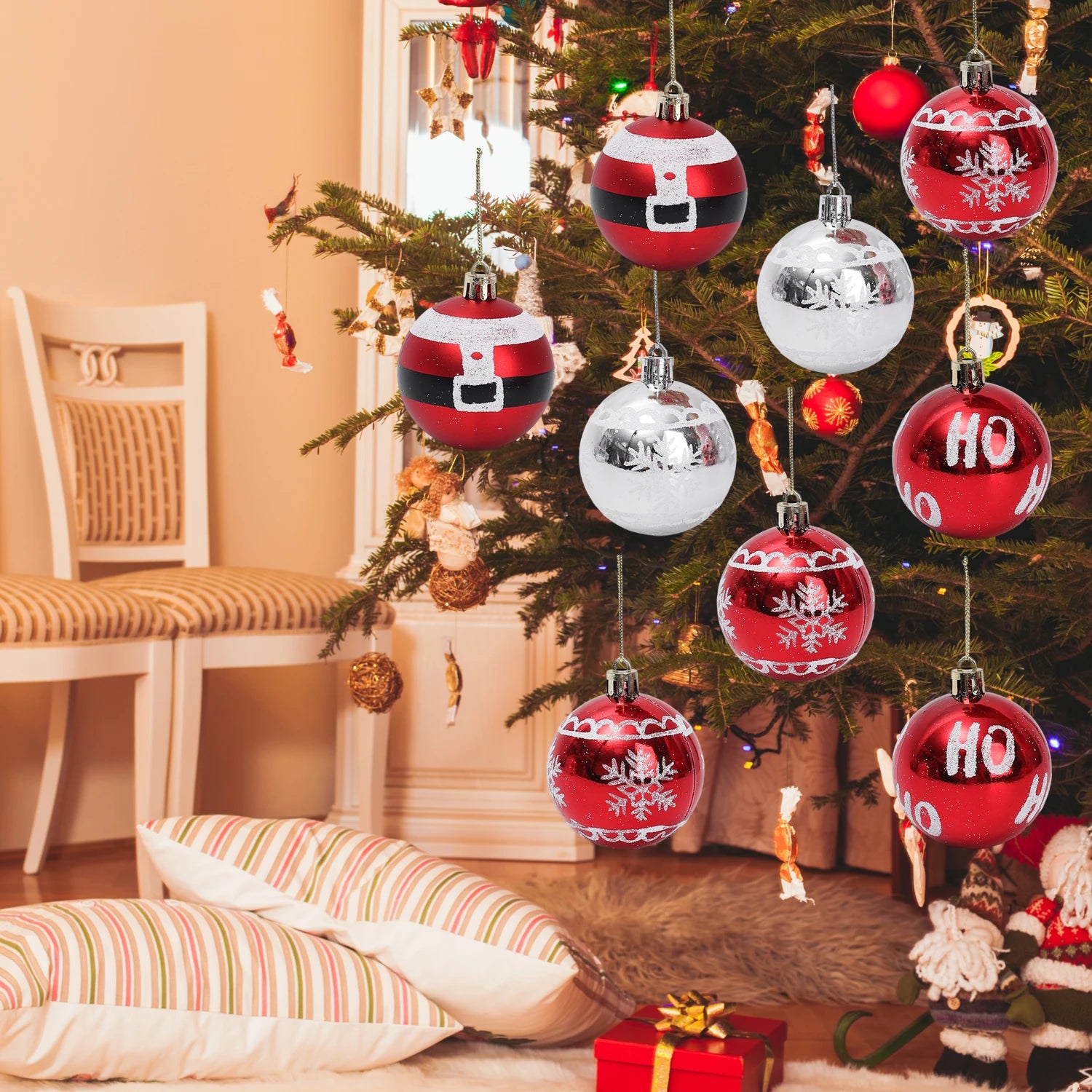 - Für Ganzjahresfenster- oder Türdekorationen eignen sich die Kugeln gleichermaßen, wodurch saisonale Frische auch außerhalb des Baums entsteht.