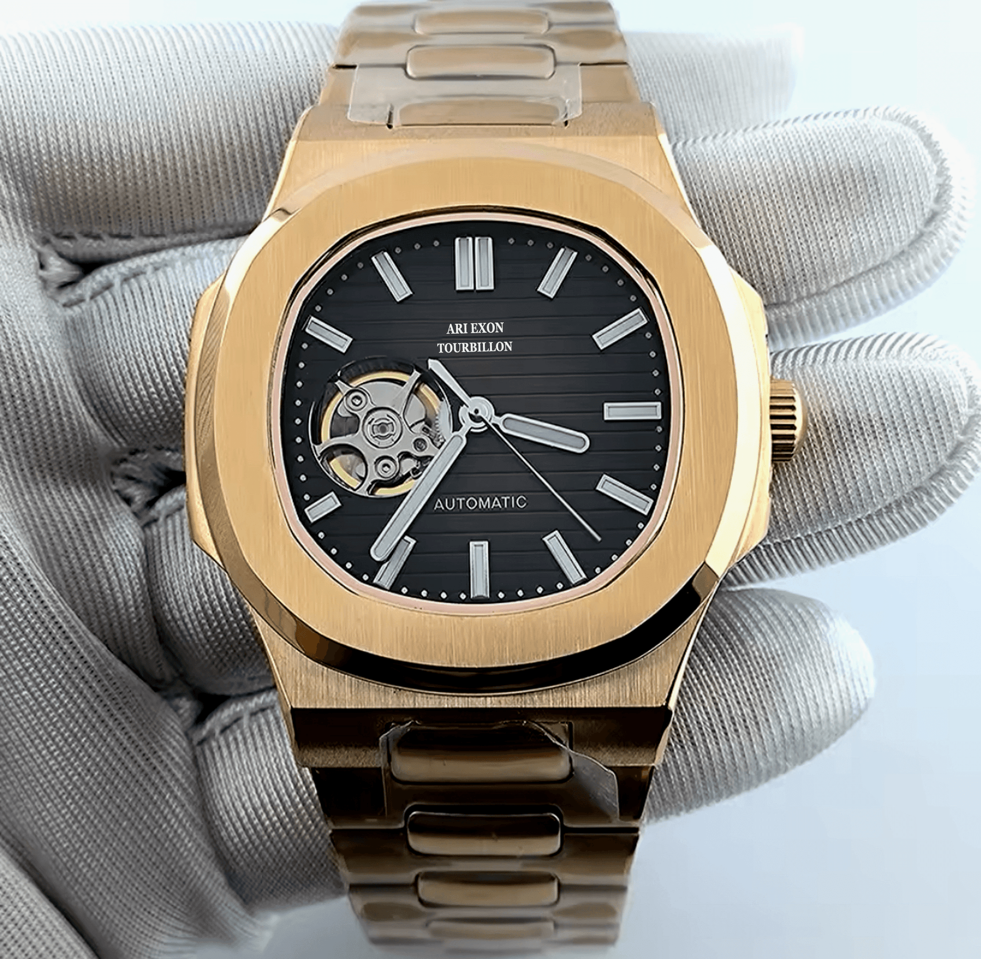 The ARI EXON Tourbillon Watch is a masterpiece of innovation and elegance. Combining Japan’s precision craftsmanship with a luxurious starry sky skeleton design, it offers both artistic allure and high-performance mechanics. Whether for business or leisure, this timepiece speaks volumes about sophistication and excellence.