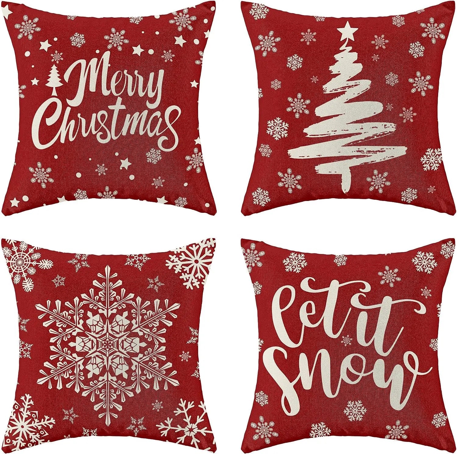 Christmas Pillowcase, Red Pillow Cover Farmhouse Snowflake Christmas Linen Pillowcase Suitable for Sofa Home Decoration