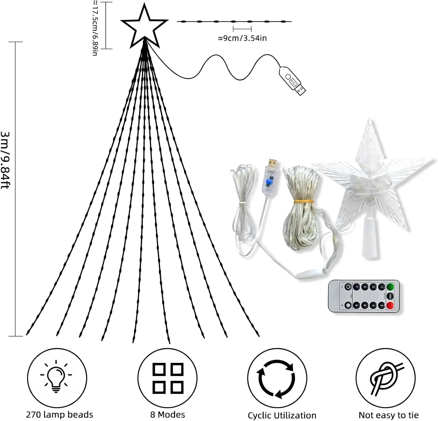 SKYSHADOW Wasserfall-Lichter 198 LEDs - USB 2 m Wasserdicht 8 Modi