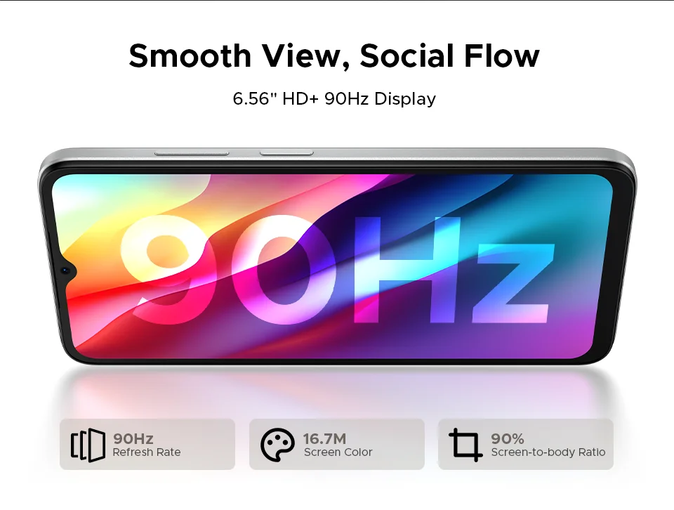 - 6,56 Zoll HD+ Display mit flüssigen 90 Hz für sanftes Scrollen und reibungslose Bilder