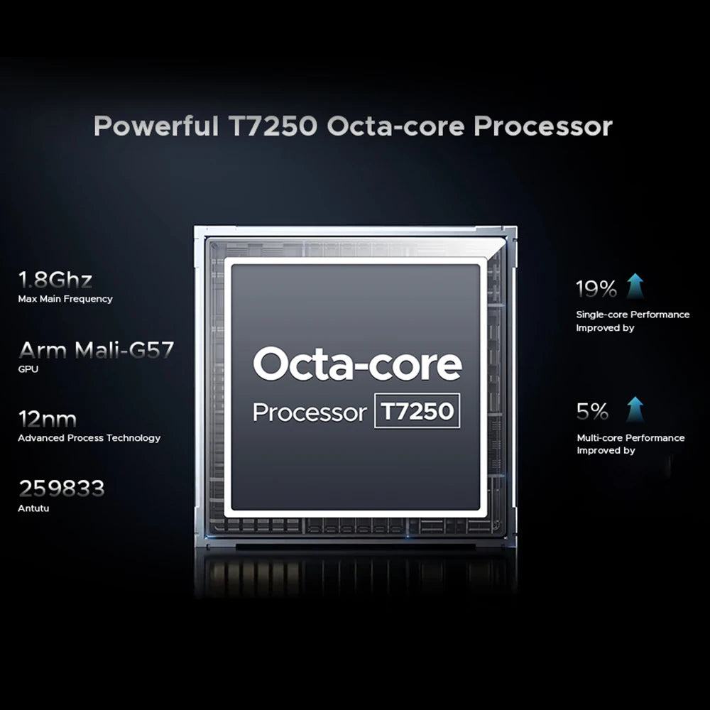 - Leistungsstarker Octa-Core Unisoc T7250 sorgt für reibungsloses Multitasking, Apps und Surfen.