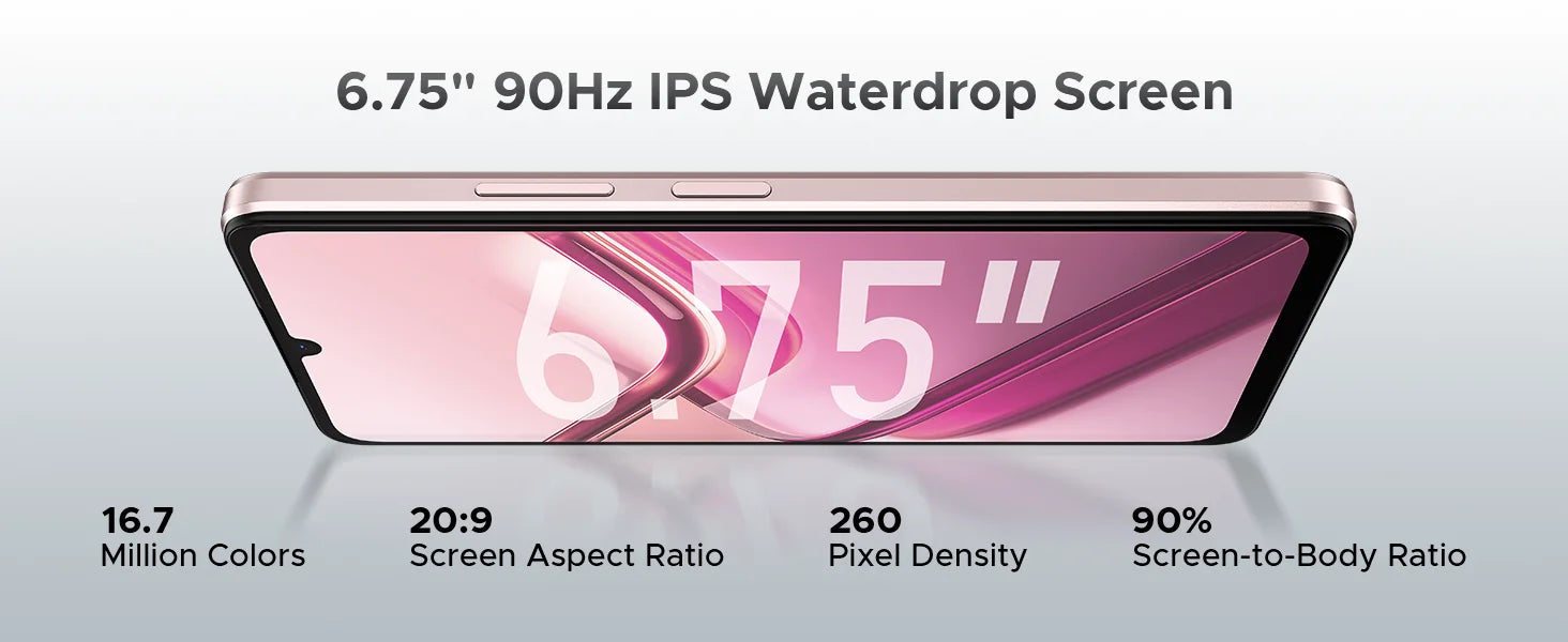 - Display: 6,75 Zoll HD+ IPS-Display mit 720x1600 Pixeln, 90 Hz