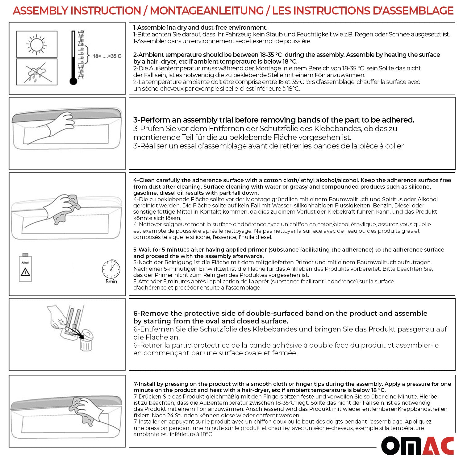 Die Installation dauert nur Sekunden mit doppelseitigem Klebeband, das auf der Rückseite unserer Produkte vorinstalliert ist. Kein Bohren, kein Schneiden. (Bitte beachten Sie die Montageanleitung.)