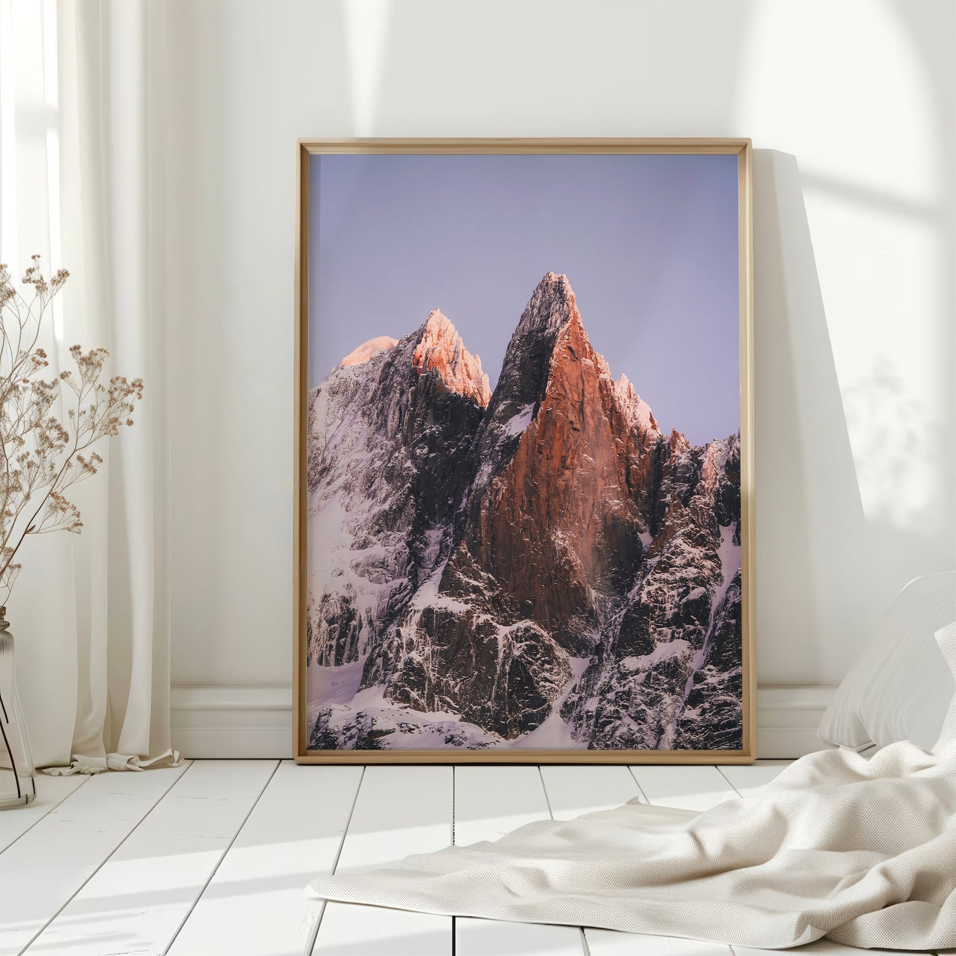 Diese limitierte Edition fängt das warme Sonnenuntergangslicht über Les Drus eindrucksvoll ein und verleiht jedem Raum eine beruhigende, gleichzeitig kraftvolle Atmosphäre. Der hochwertige 200 g/m² Fine-Art-Druck bietet lebendige Farben, präzise Details und eine matte Oberfläche, die Reflexionen minimiert und eine elegante, zeitlose Wirkung erzielt.