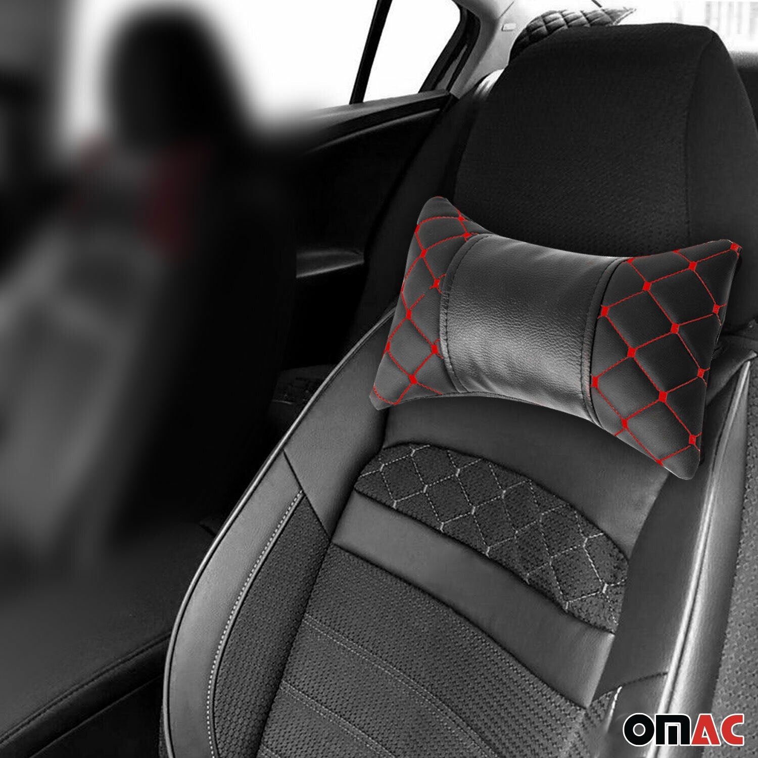 KFZ Auto Kopfstütze Kissen Autositzkissen Nackenkissen Leder Schwarz Rot 8x30cm