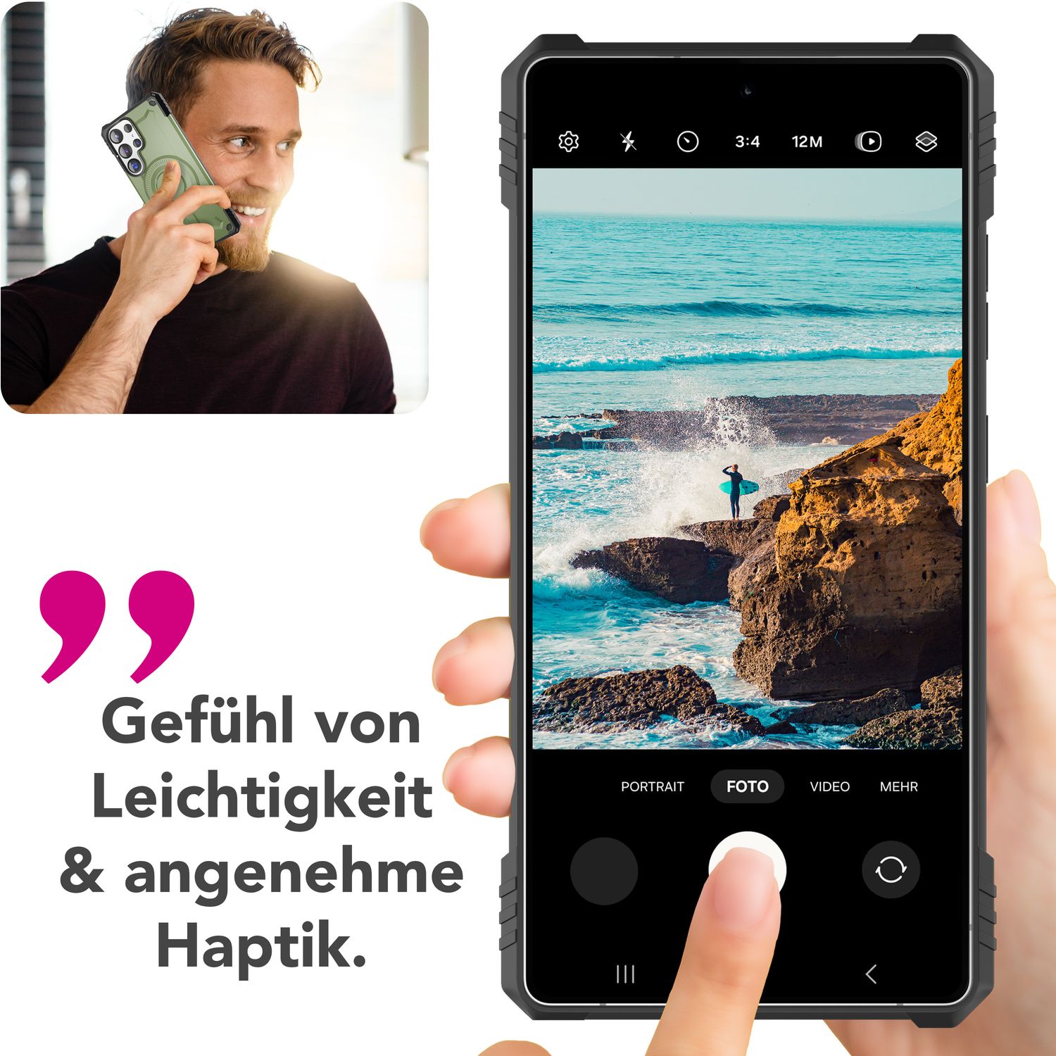 Dazu sorgt die griffige, rutschfeste Oberfläche für sicheren Halt in jeder Situation. Ob unterwegs, beim Sport oder im Alltag – dein Smartphone bleibt geschützt und einsatzbereit!