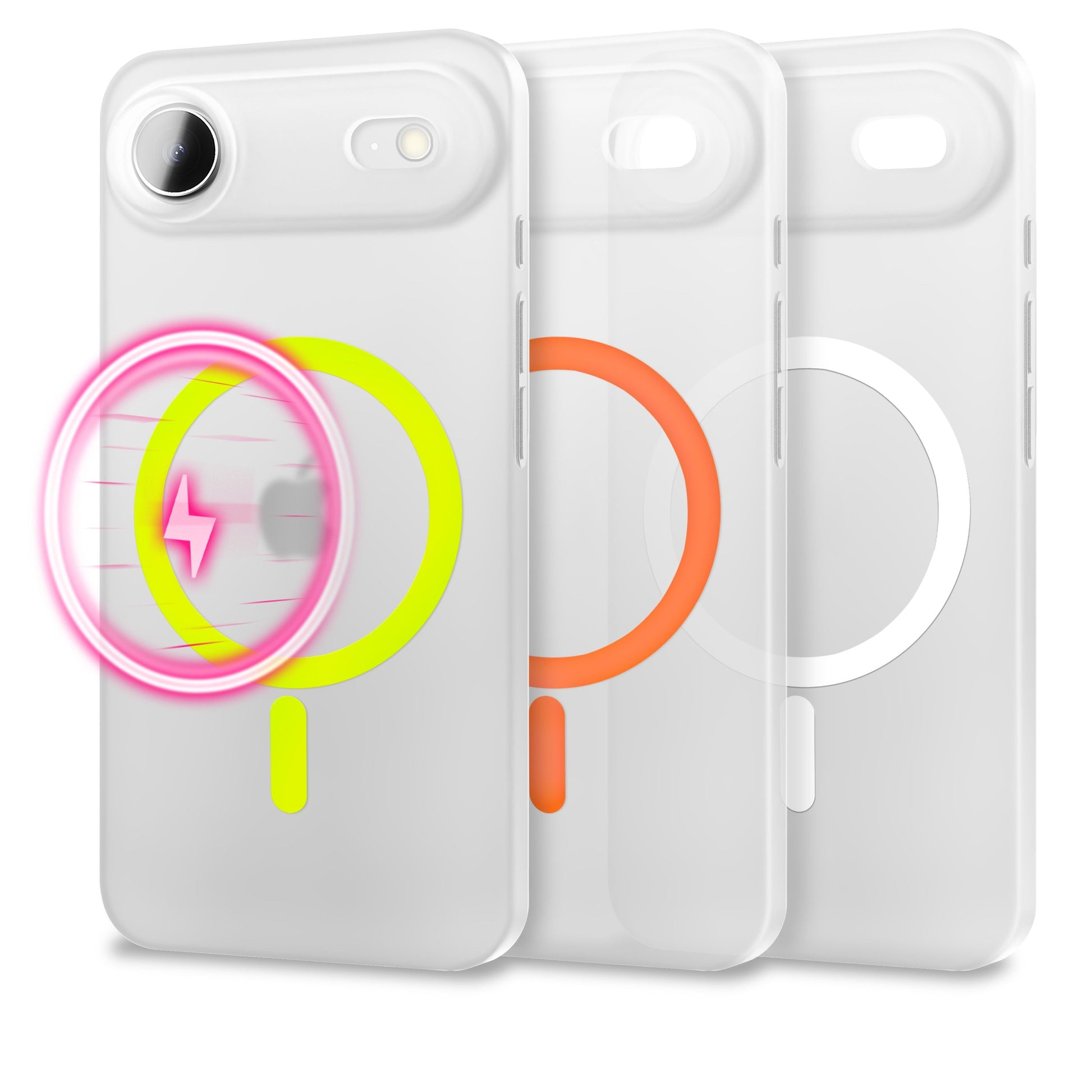 NALIA MagSafe Hülle Thinix Glow für Apple iPhone 17 Air (Extrem Dünn mit Leucht-Ring) - 0,3mm Ultra-Slim Hardcover, Leuchtet im Dunkeln, Durchsichtig & Matt