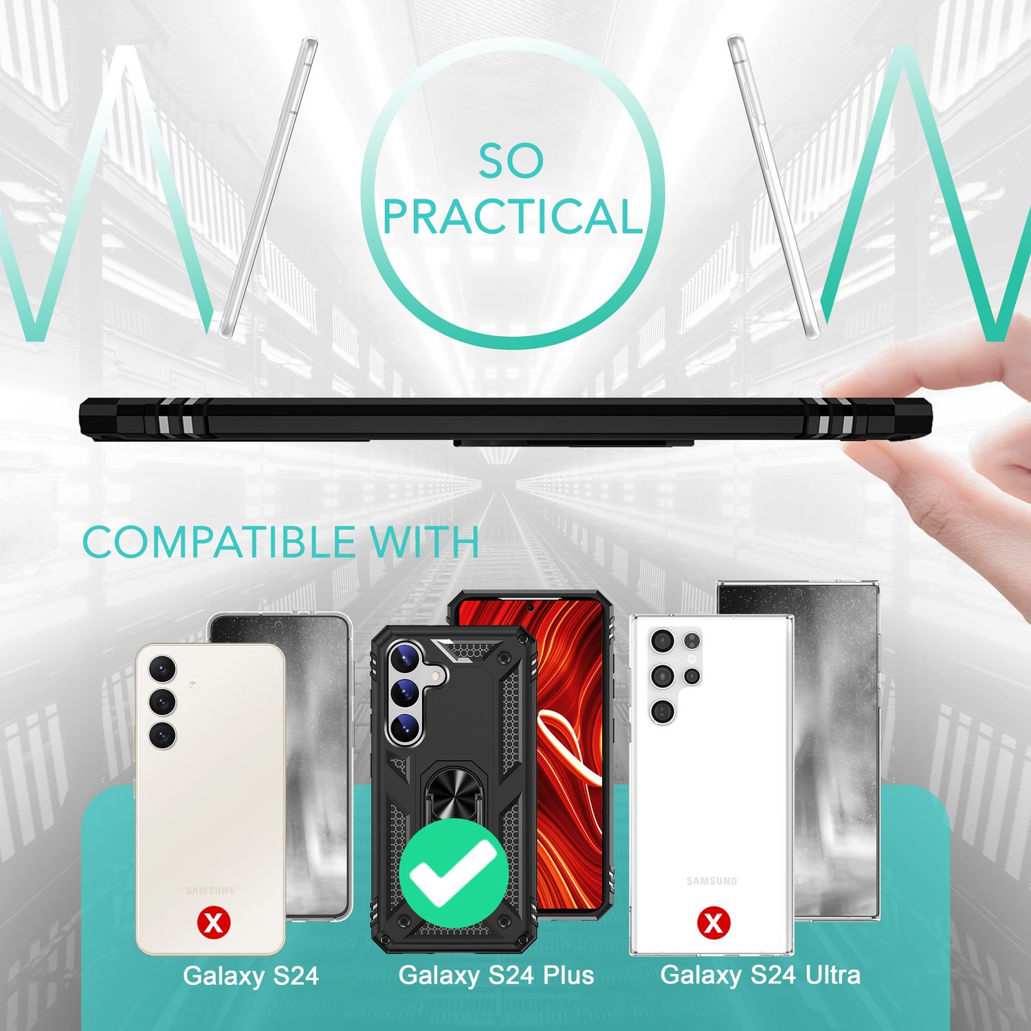 NALIA Military-Style Ringhülle für Samsung Galaxy S24 Plus Hülle, Extrem Robust & Schock-Resistent, Outdoor Schutzhülle