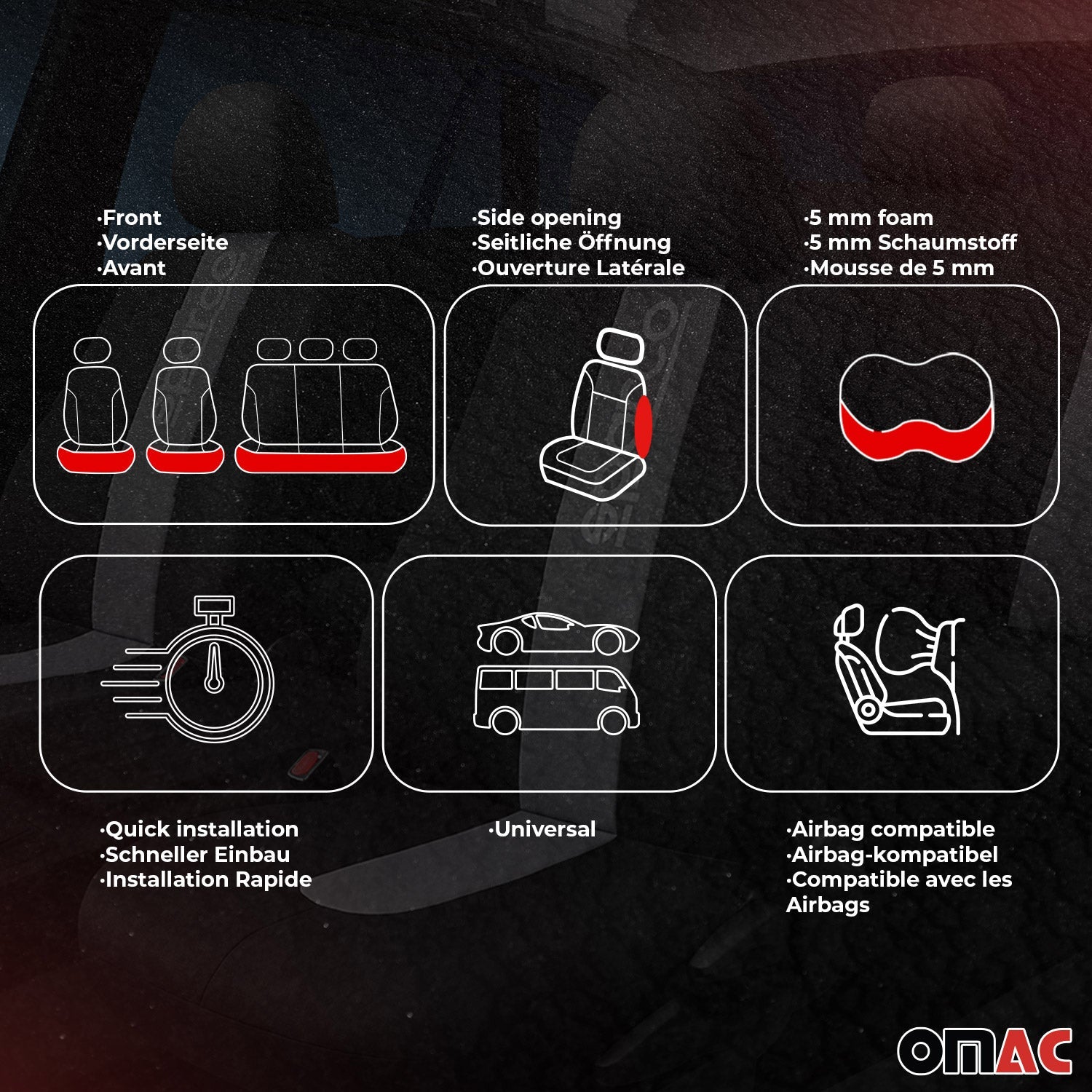 - Universelle Passform: Kompatibel mit den meisten Fahrzeugsitzen, mit und ohne Seitenairbags.