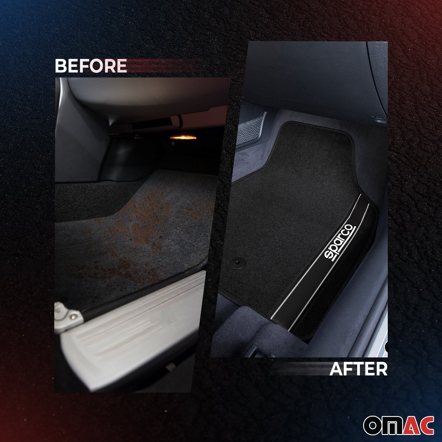 - Sportlicher Optik: Vordermatten mit SPARCO Logo für einen dynamischen Look