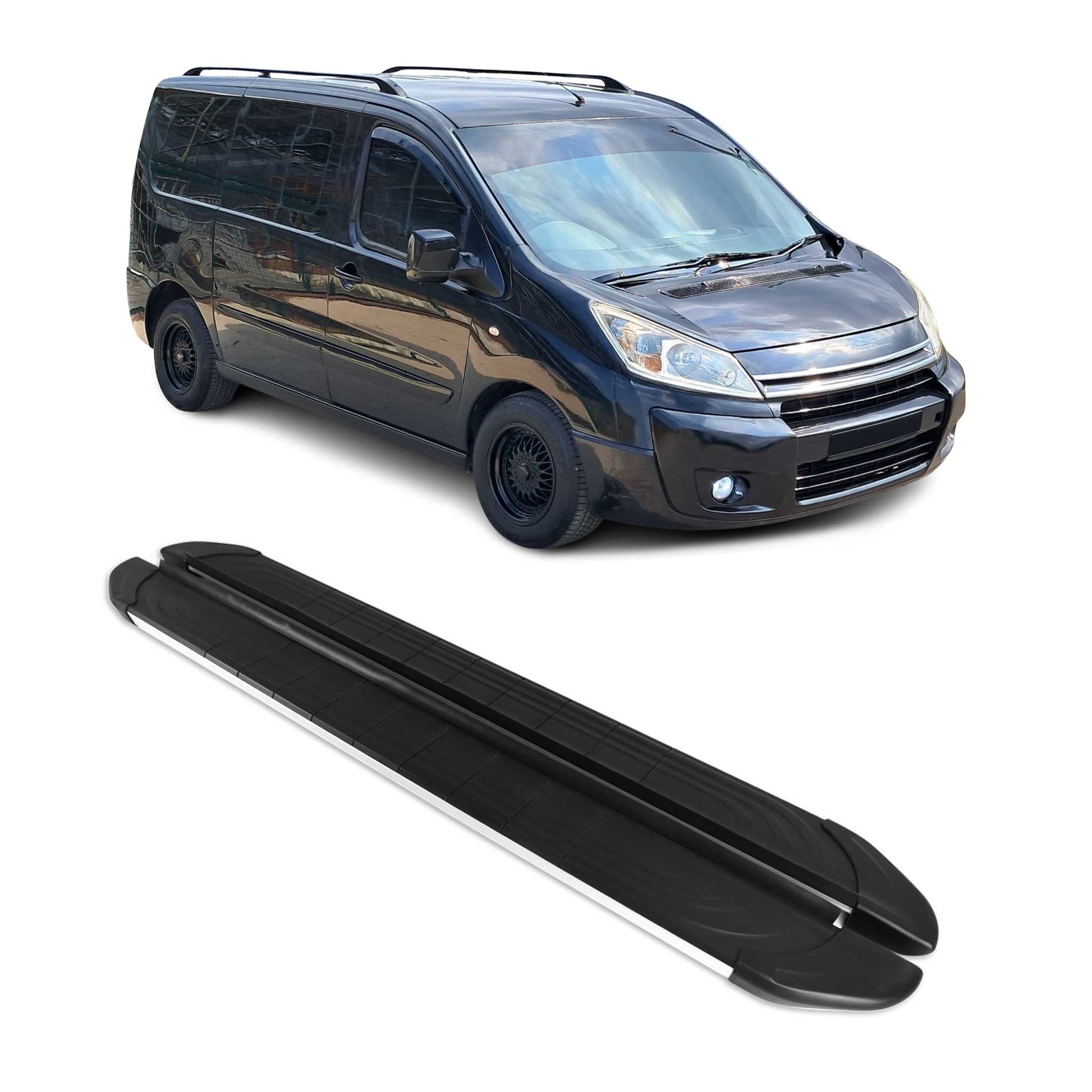 Trittbretter Seitenschweller für Citroen Jumpy 2006-2016 L2 Alu Schwarz Grau