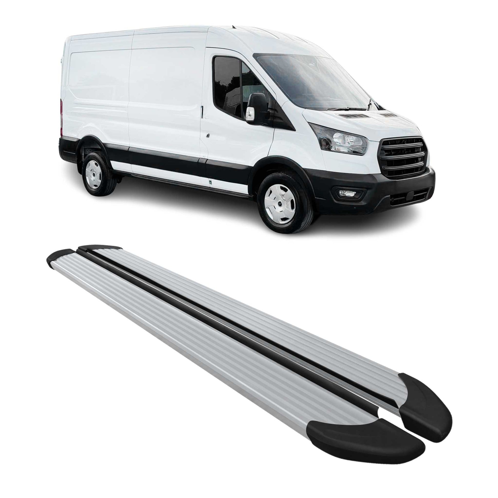 Trittbretter Seitenschweller für Ford Transit 2014-2025 L3 Aluminium Silber 2x