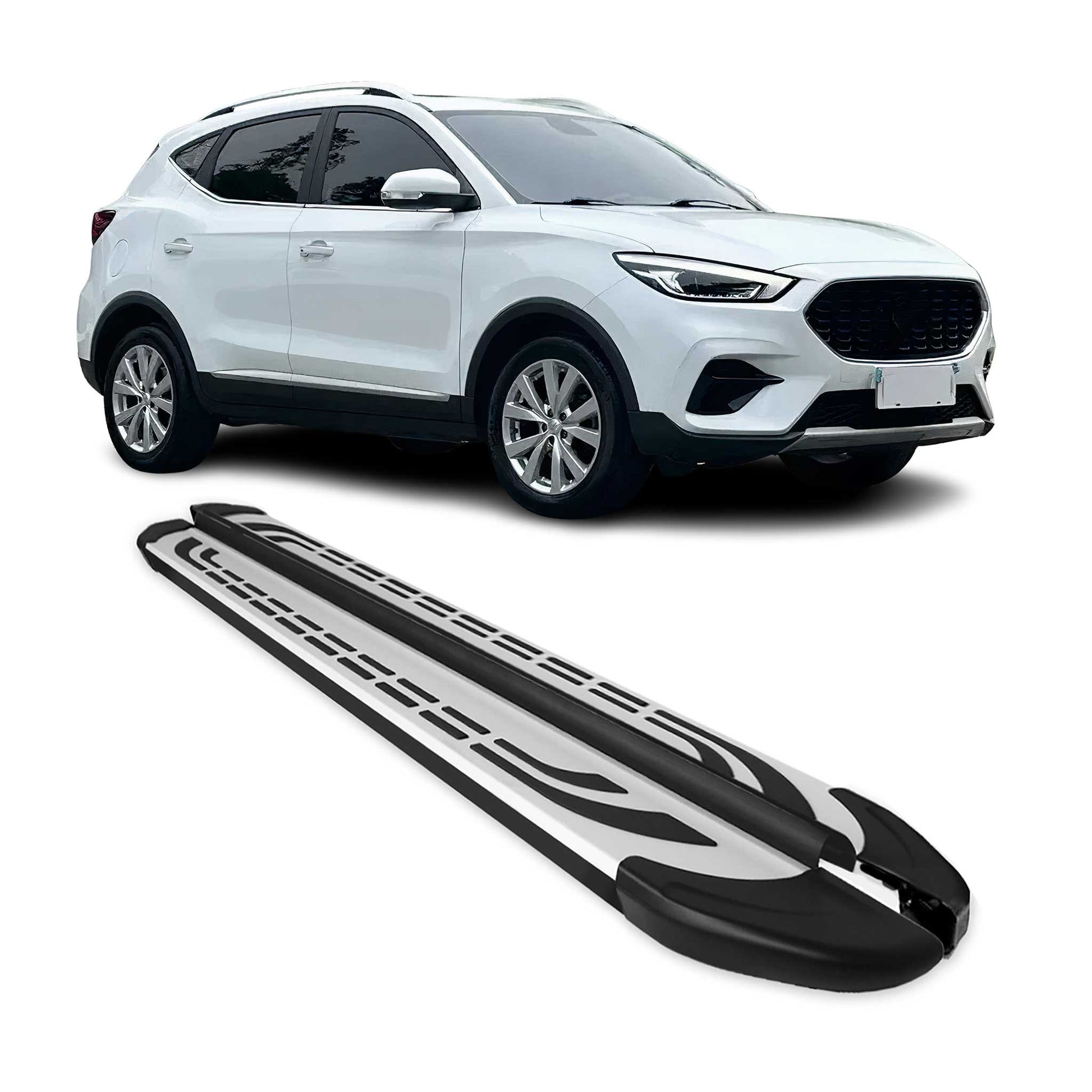Trittbretter Seitenschweller für MG ZS 2018-2025 Silber Schwarz Aluminium 2 tlg