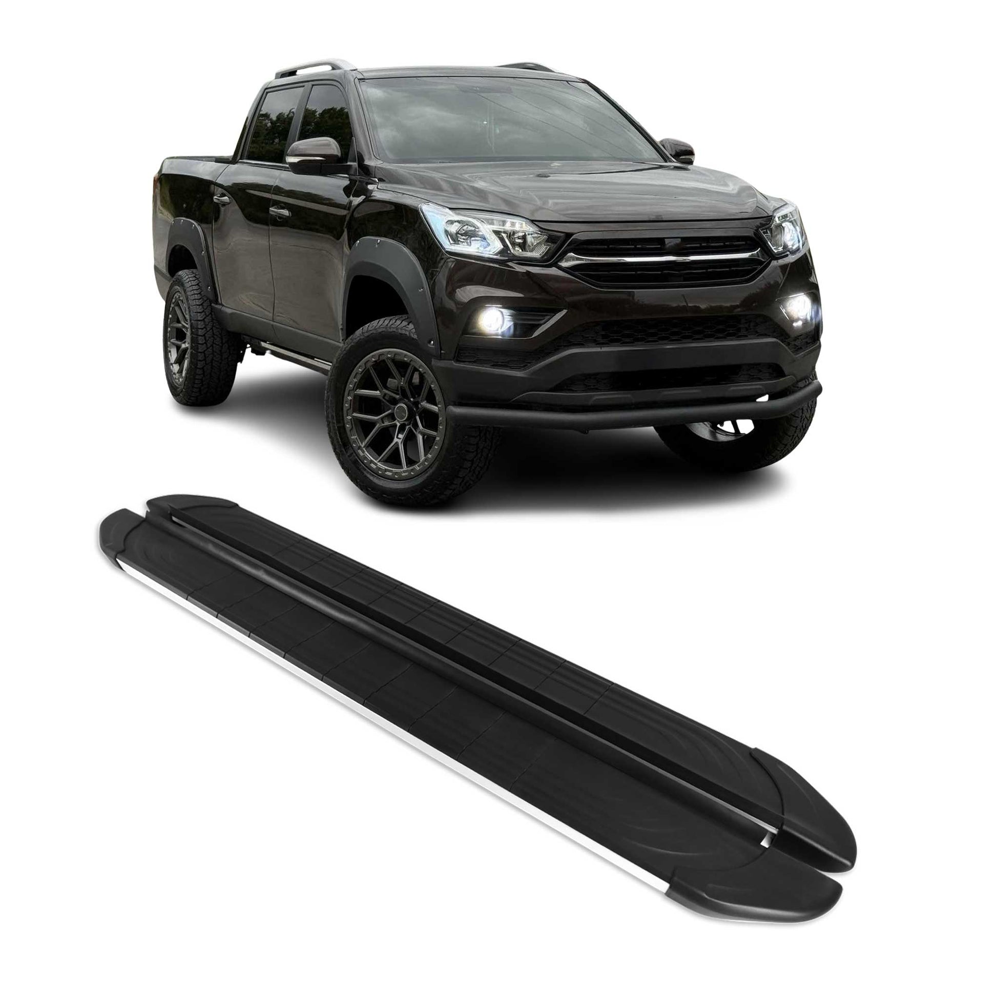Trittbretter Seitenschweller für Ssangyong Musso 2018-2025 Alu Schwarz Grau