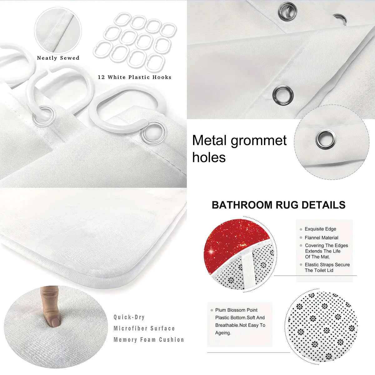 4pcs Merry Christmas Christmas Tree Printed Bathroom Set 180x180 Waterproof Shower Curtain, Floor Mat, U-shaped Mat, Toilet Mat