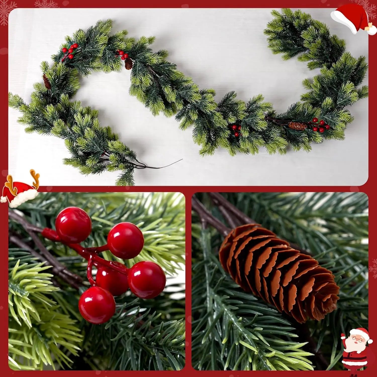 6 Fuß echte künstliche Girlande – ideal für Weihnachten, Winter und Neujahr, Dekoration für Mantel, Tisch, Wand, Weihnachtsdekoration