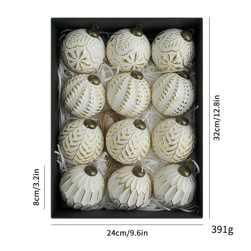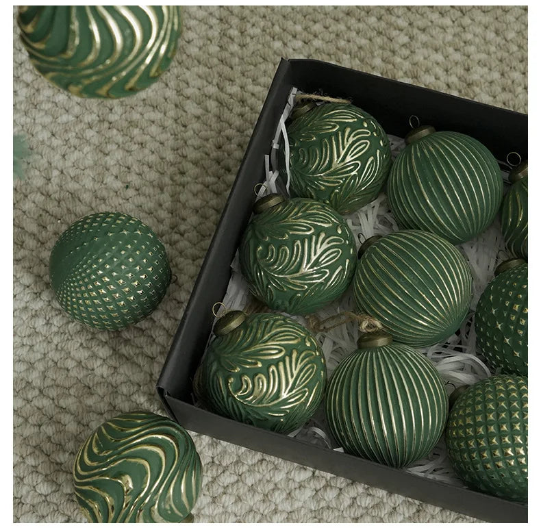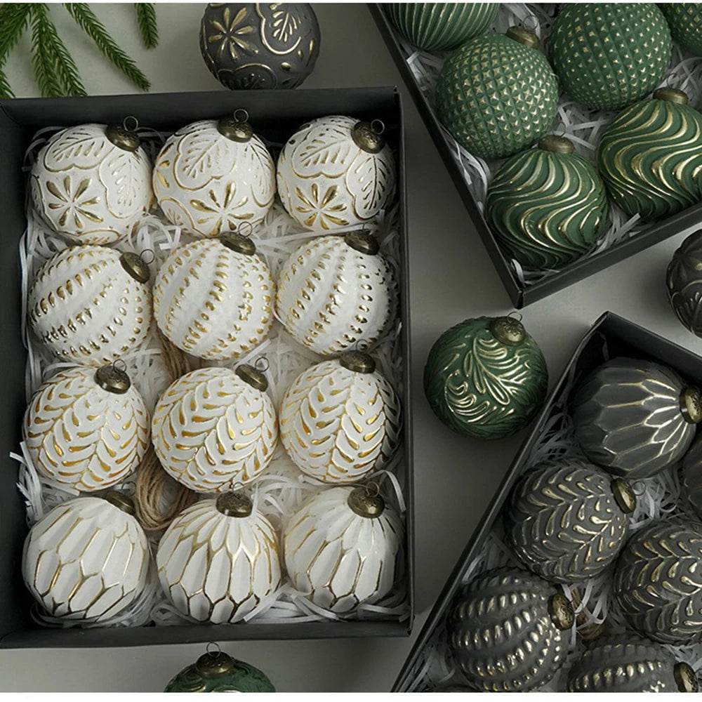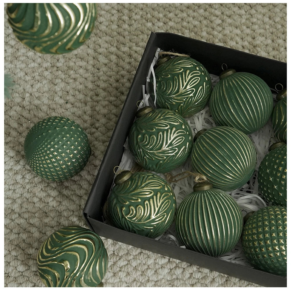 Aurora KugelSet 8cm Grün Weiß Glitzer – 13-teiliges Set für elegante Fest- und Wohn-Dekoration