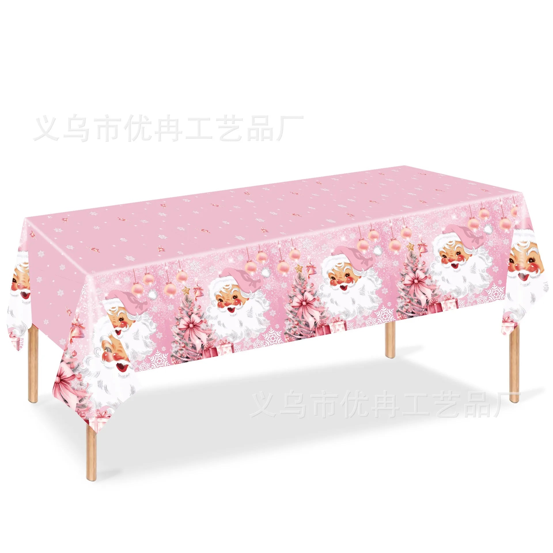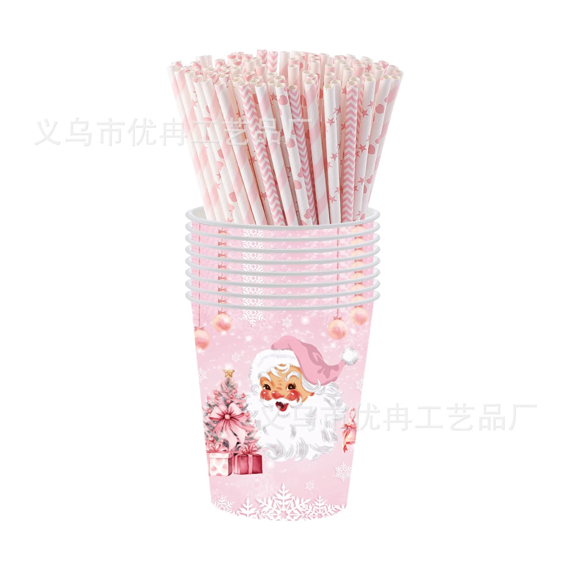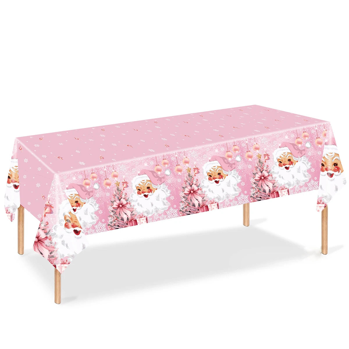 8Guests Pink Christmas Santa Claus Disposable Tableware Snowflake Santa Merry Christmas Decor 2025 Feliz Navidad Happy New Year