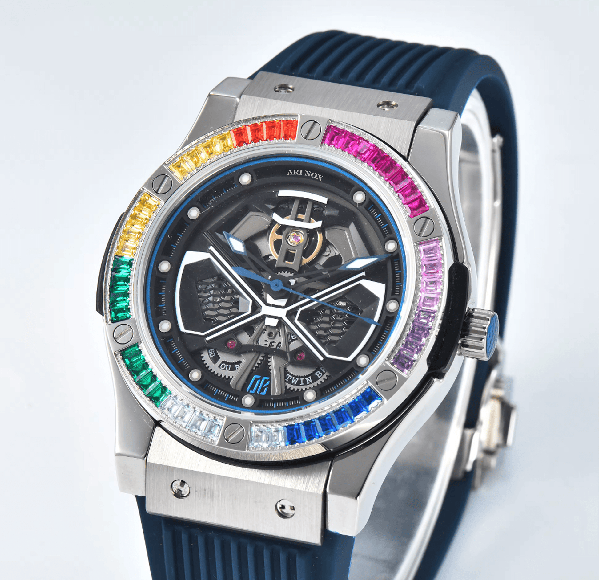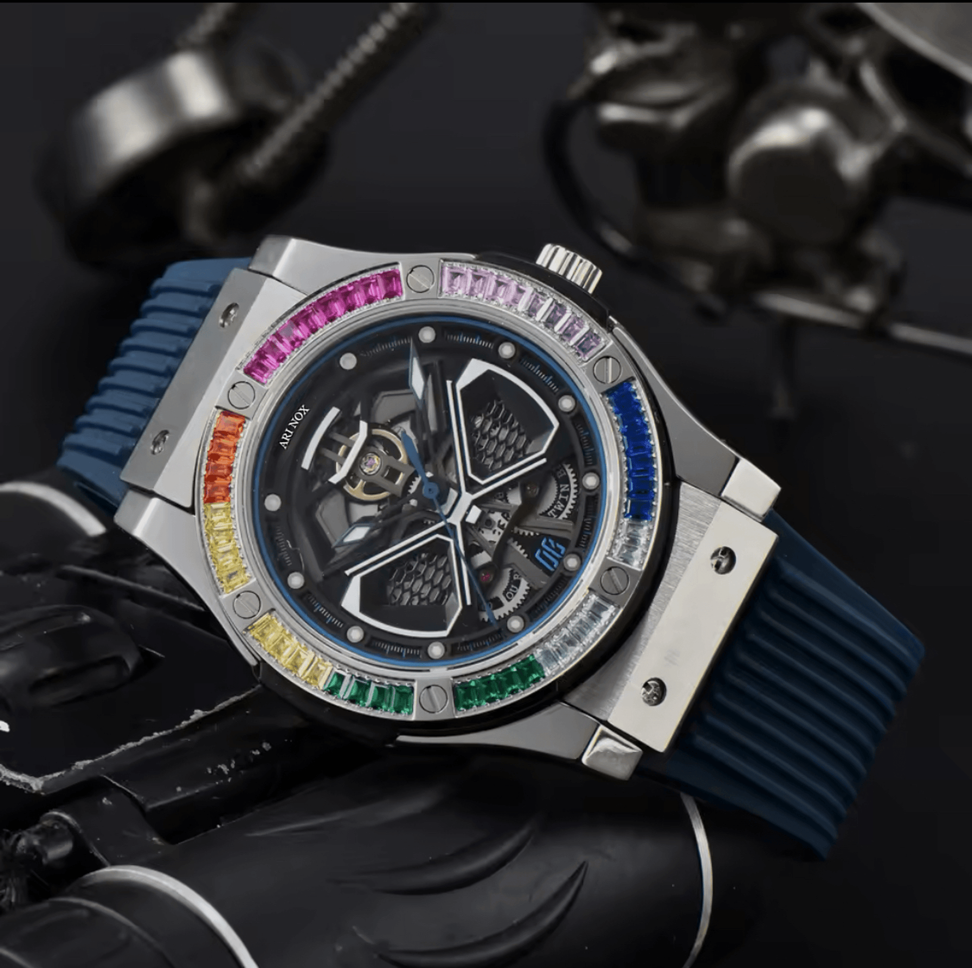 Our company specializes in crafting luxurious, high-quality timepieces while maintaining affordability. Featuring the advanced Japani Momentum Tourbillon, ARI NOX combines precision, elegance, and durability, setting a new standard in mechanical watchmaking.
