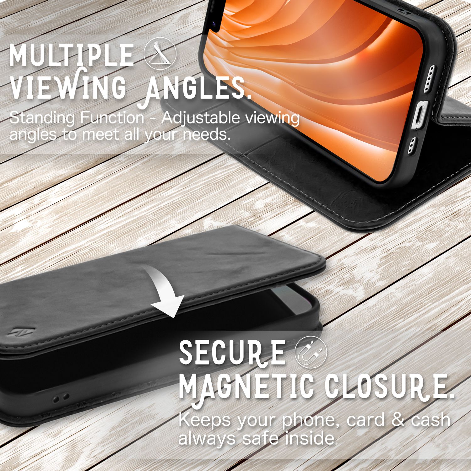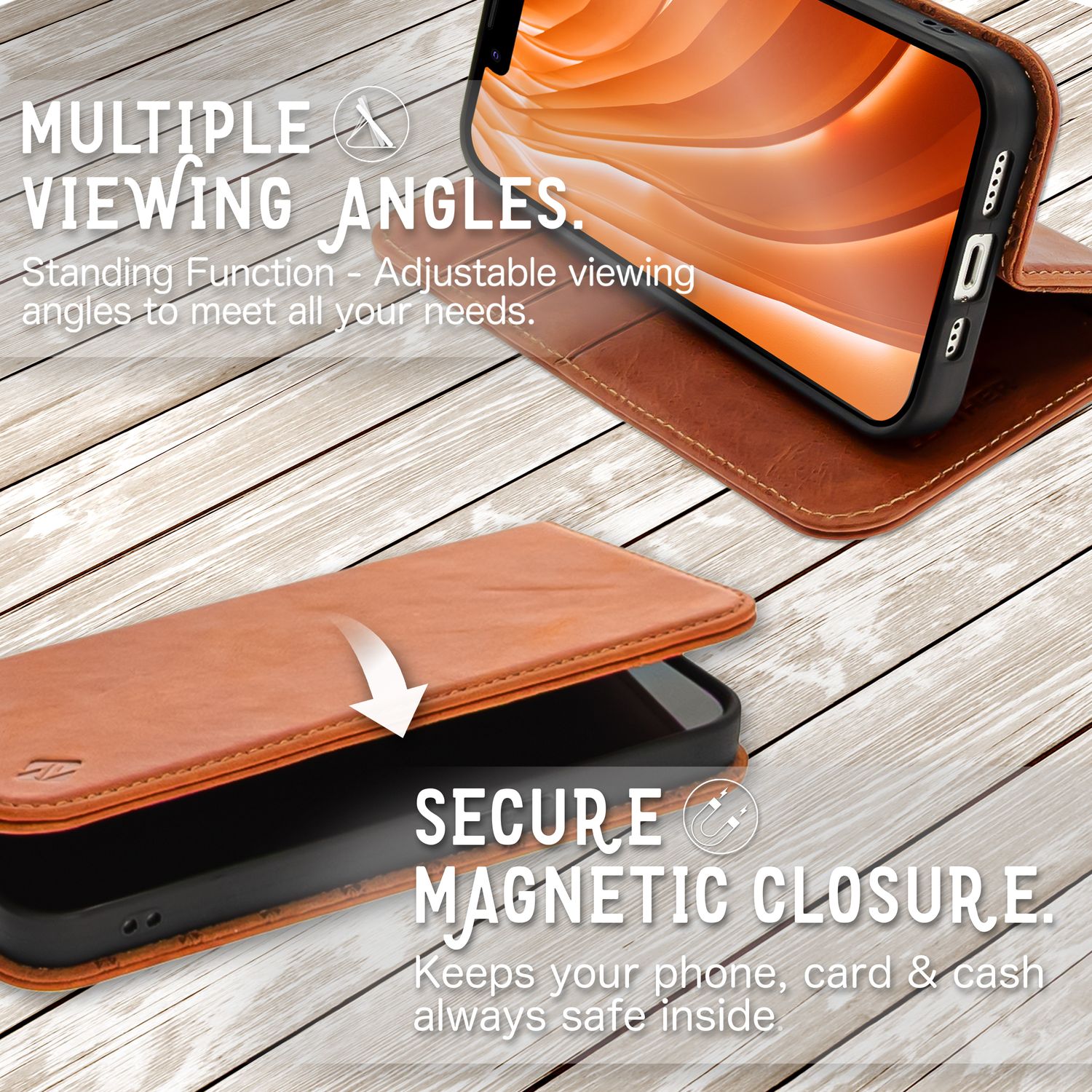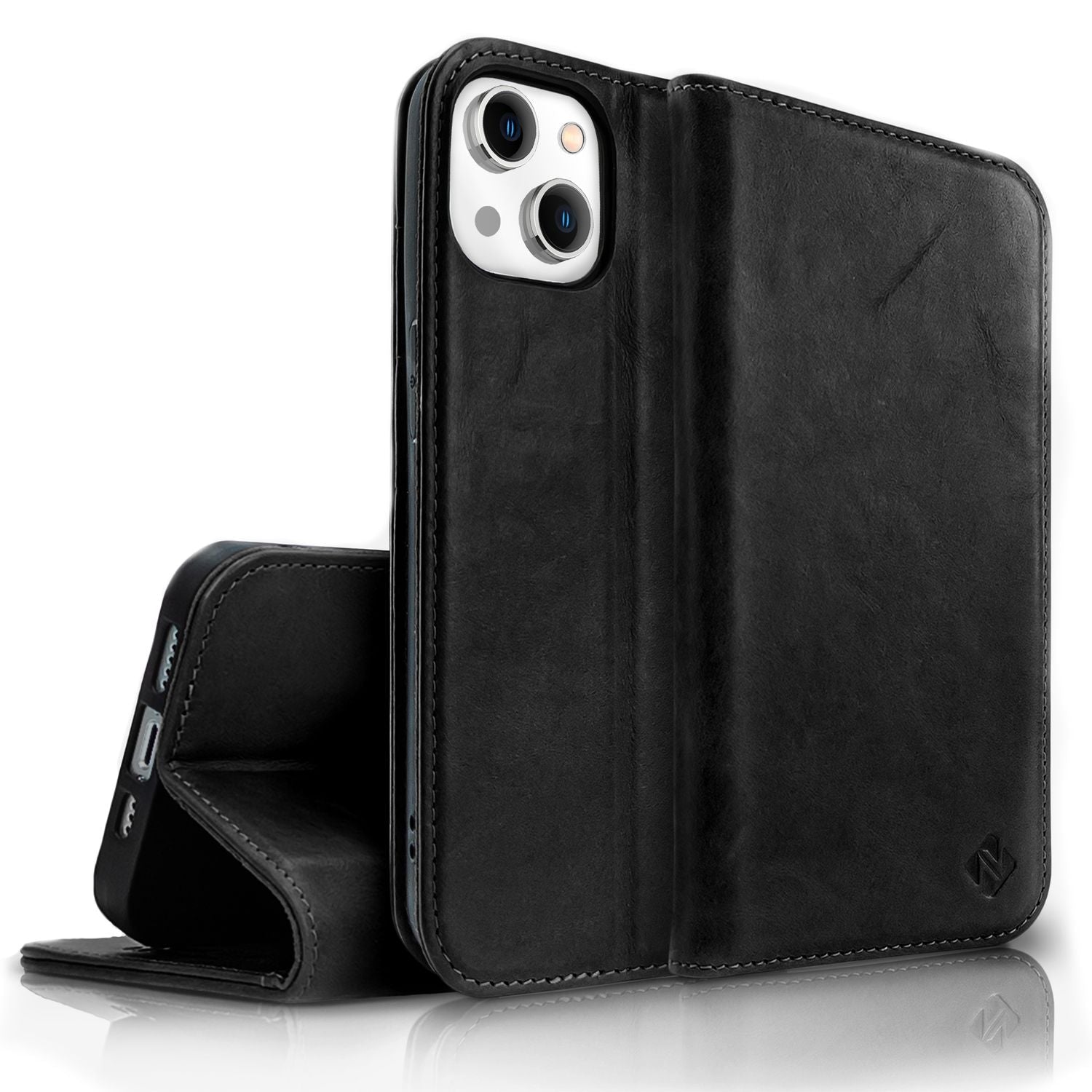 Echt Leder Hülle für iPhone 14 Plus, RFID Schutz Flipcase Klapphülle Schutzhülle