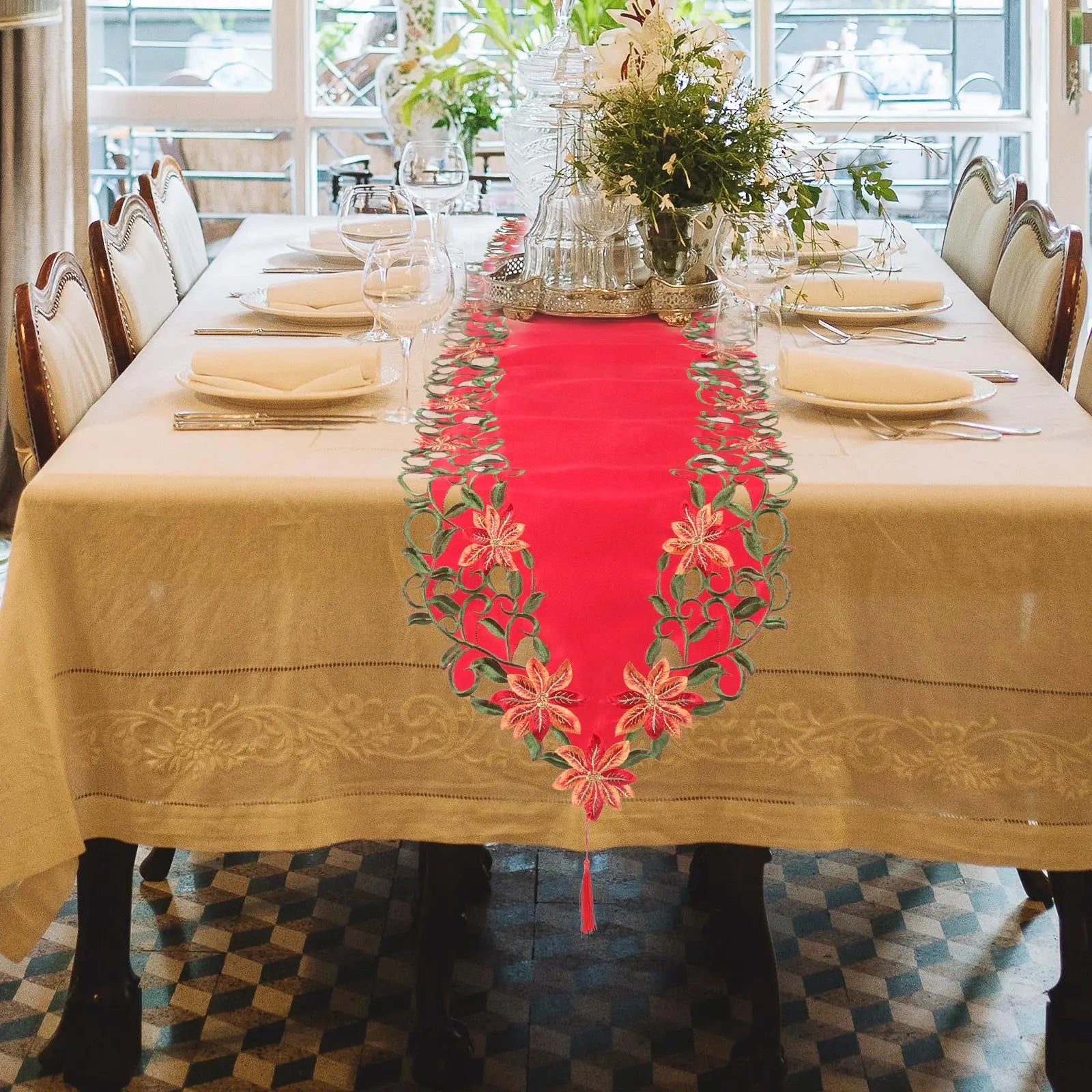 Embroidered Christmas Printed Christmas Decoration Tablecloths Party Picnic Retro Style Table Decoration Supplie Runners Linens
