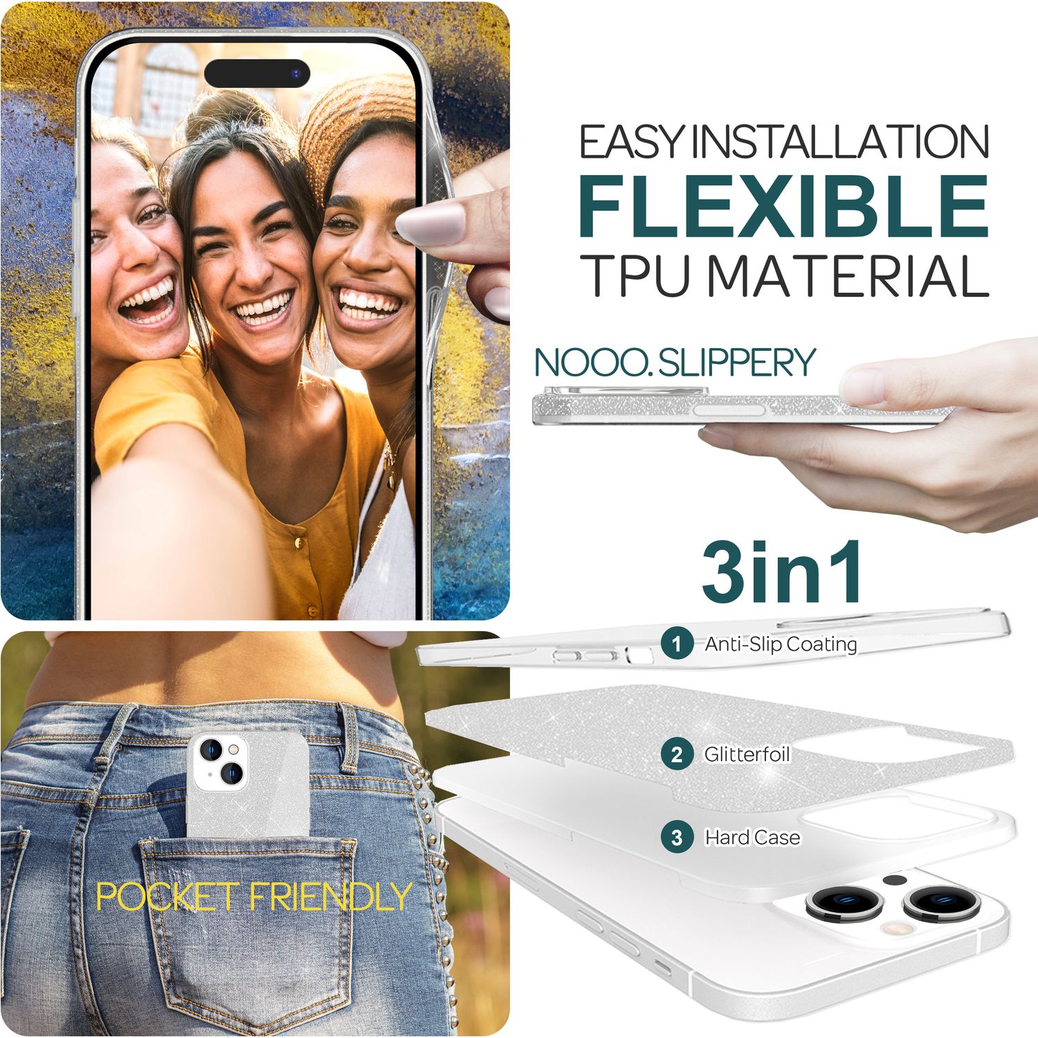 Glitzer Hülle für iPhone 15 Plus Hybrid Bling Case Silikon Handyhülle Tasche TPU