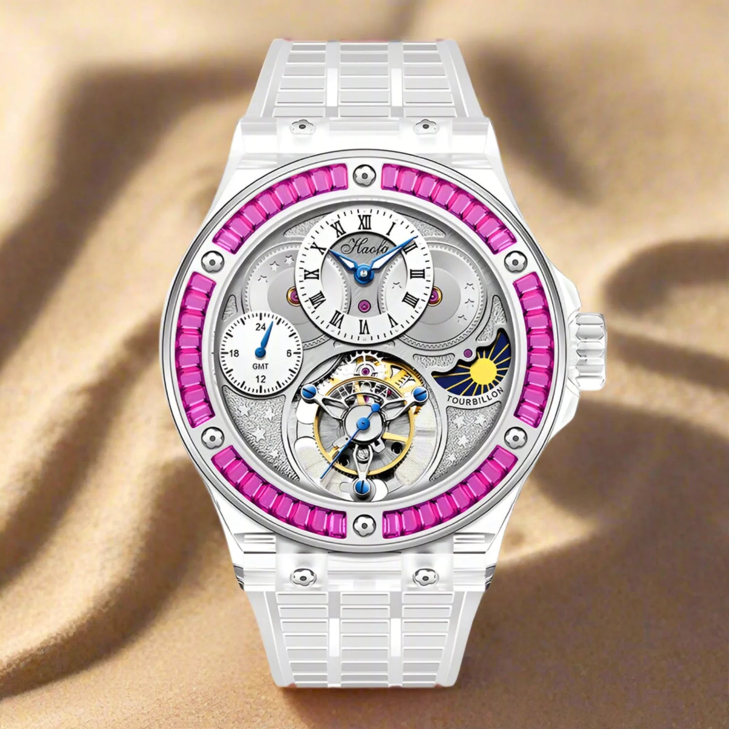 GMT Haofa tourbillon timepiece k9 crystal body sapphire lens day night feature watch