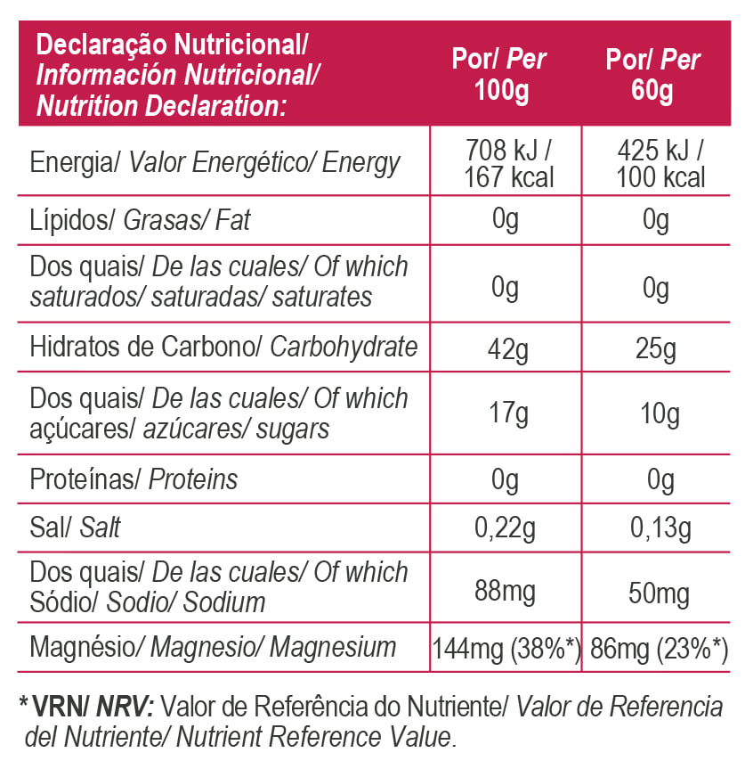 Ideal for any type of training, especially adapted to shorter, lighter workouts or running workouts. It has no specific intake period and can be taken throughout the sports season.