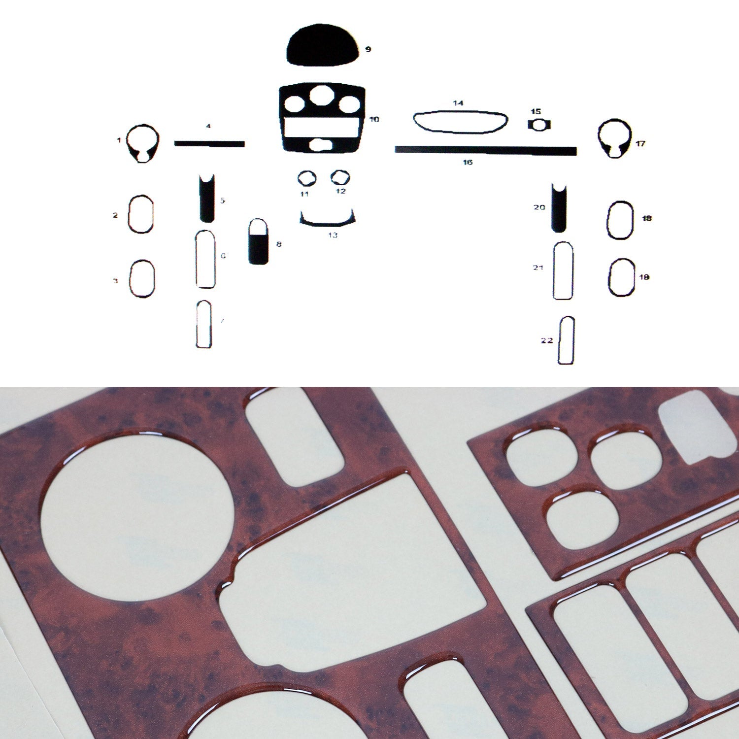 Innenraum Dekor Cockpit für Renault Clio 2007-2012 Wurzelholz Optik 22tlg