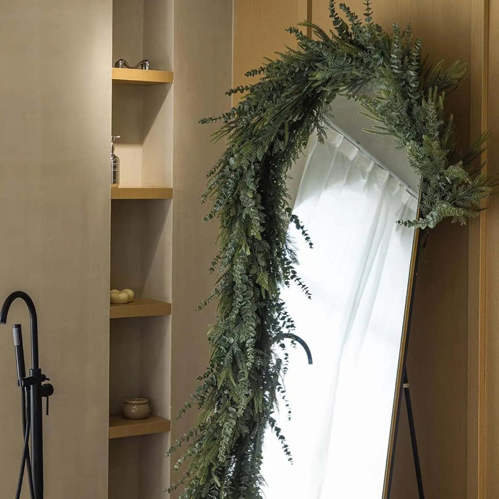 Künstliche Kieferngirlande, realistisch, Winter, Weihnachten, weich, dick, grün, Kaminsgirlande, Urlaubsdekoration für Zuhause, Kaminsims, Tisch