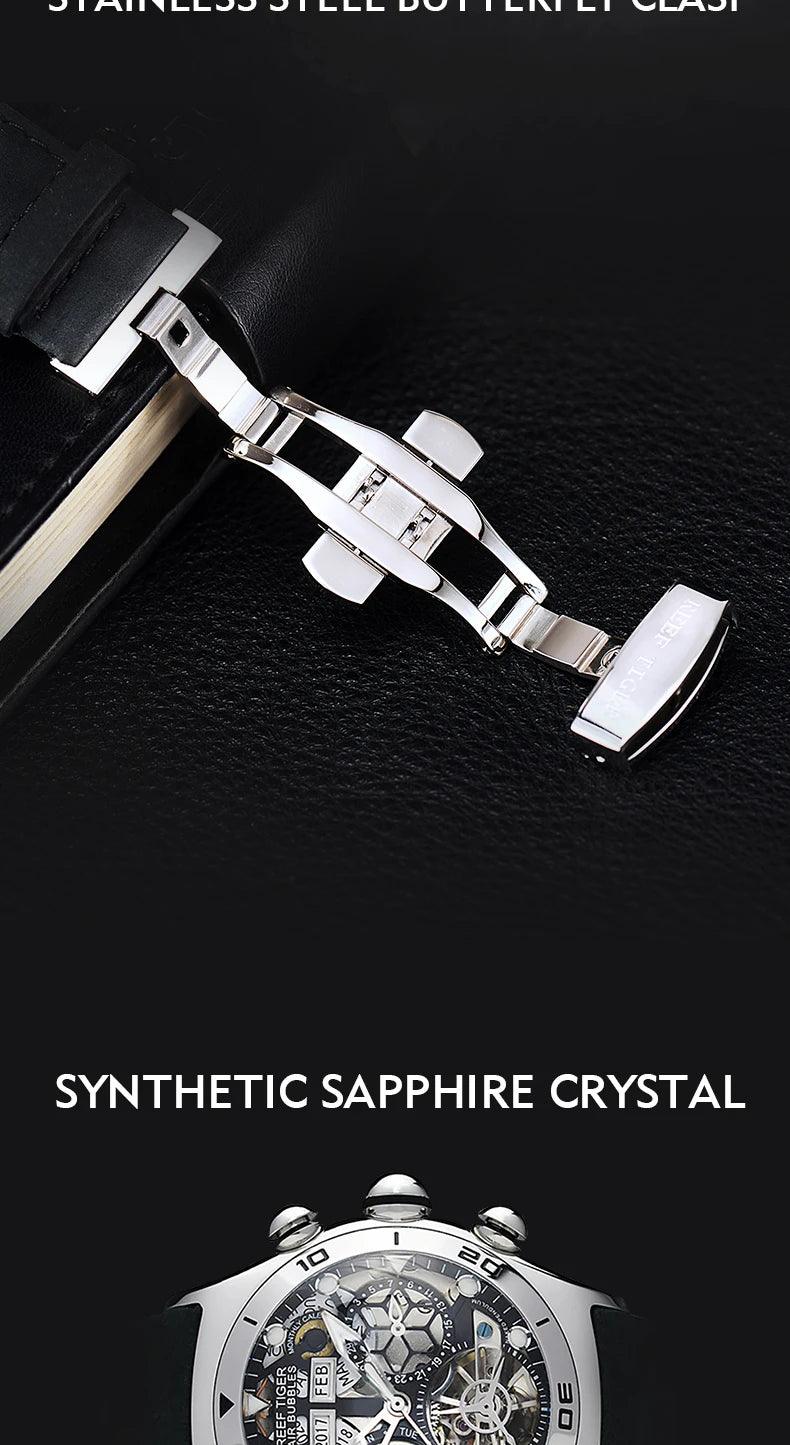 The REEF TIGER RGA703 is a high-performance automatic mechanical wristwatch designed for those who seek style, functionality, and durability. Crafted from stainless steel with a sapphire crystal dial window, this timepiece is built for hiking, sports, and outdoor adventures while maintaining a sophisticated edge.