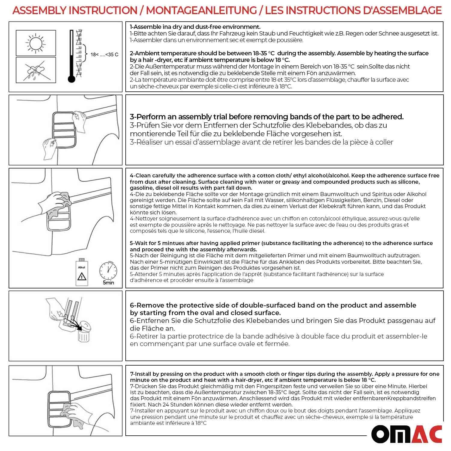Speziell für Ihr Auto entwickelt, gute Passform garantiert. Die Installation erfolgt in Sekundenschnelle mit doppelseitigem Klebeband, das auf der Rückseite unserer Produkte vorinstalliert ist. Kein Bohren, kein Schneiden. (Bitte beachten Sie die Montageanleitung.)